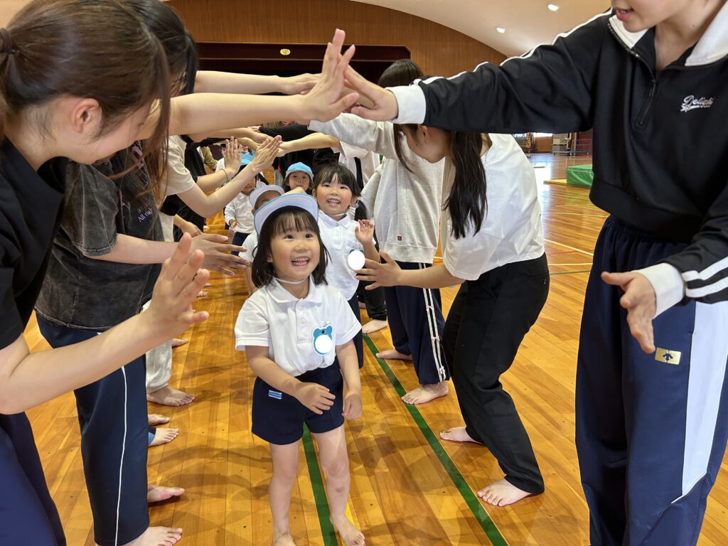 最後は学生のお姉さんがトンネルを作って見送ってくれ、子どもたちの嬉しそうな笑顔が溢れていました♡