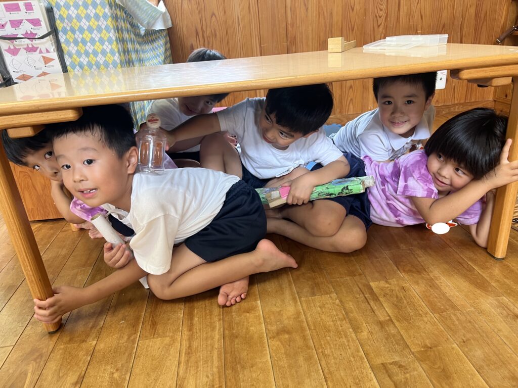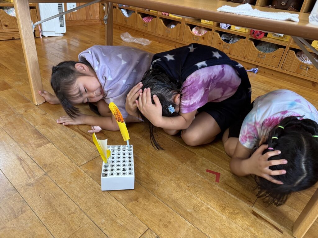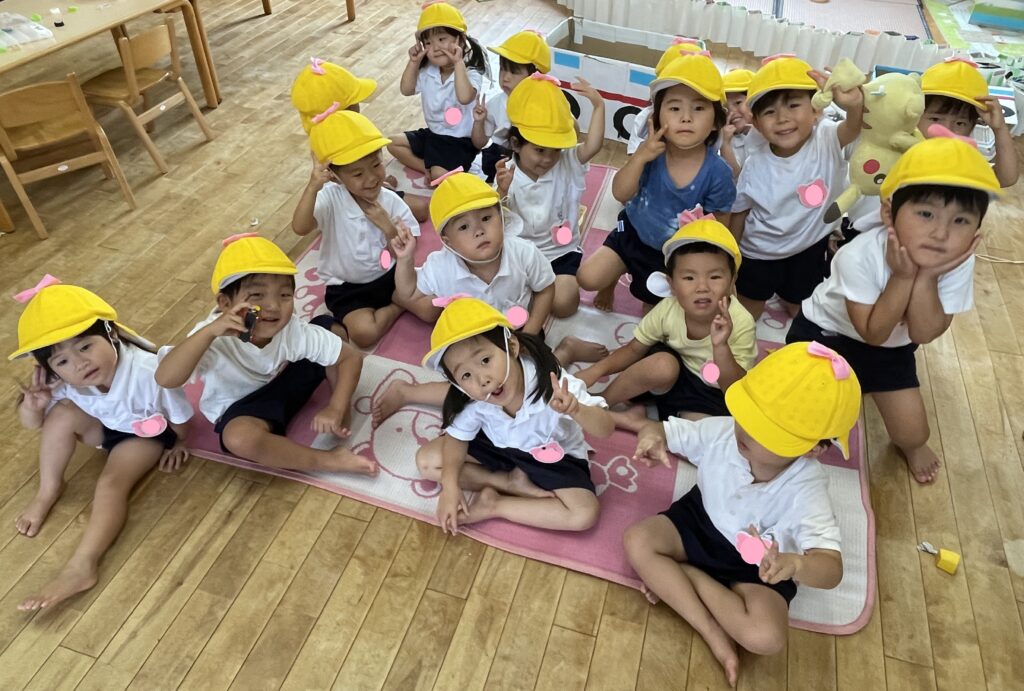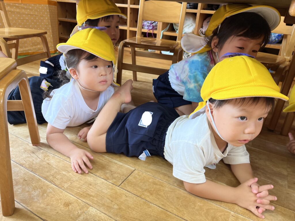 その後は、避難訓練の紙芝居を見たり、防災帽子の場所の確認をしたり、被る練習をしたりしました。いつ来るか分からない地震に備え、日頃から意識できるようにしていきたいと思います!