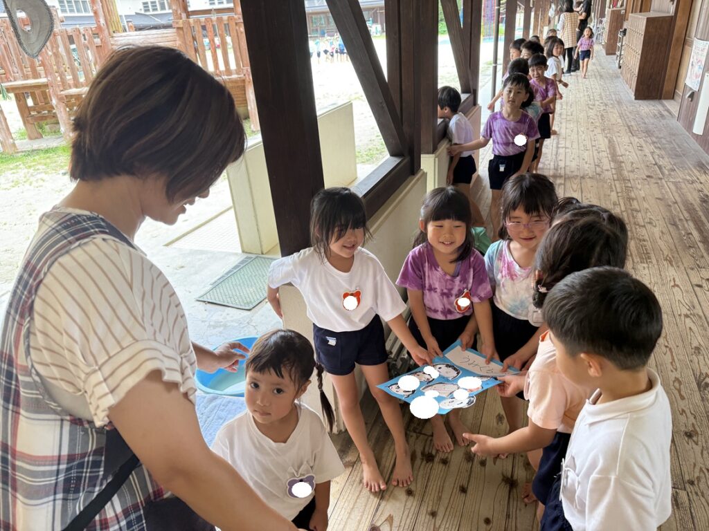 今日は、お泊まり保育で一緒に過ごすグループママに挨拶をしに行きました!「お泊まり保育よろしくね!」「一緒に寝ようね!」とわくわく♡ドキドキしながら言葉を伝えていました★
