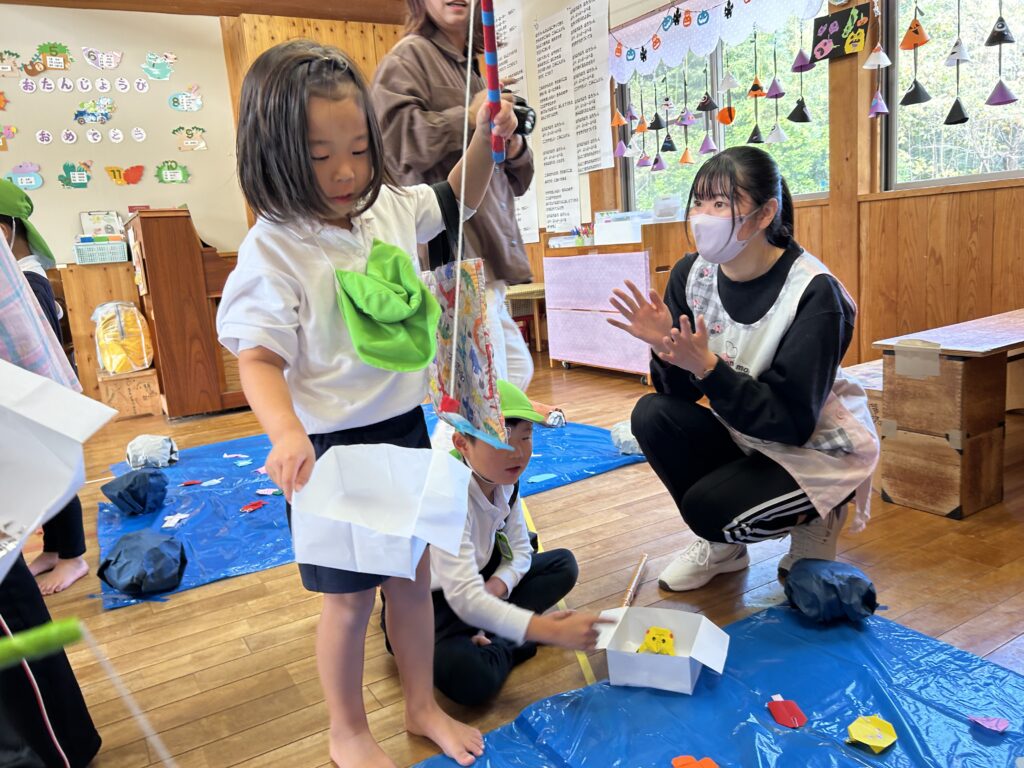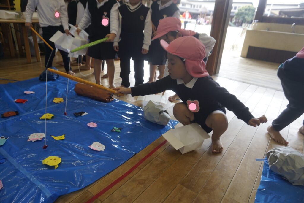 今日は子どもたちが楽しみにしていた、さわらびっこ祭りでした。後援会役員さん・幹事さんによる大型迷路、新聞紙プール、絵本の読み聞かせ、岡崎女子大学の学生さんが考えたゲームコーナーなどワクワクが溢れるお祭りとなりました。