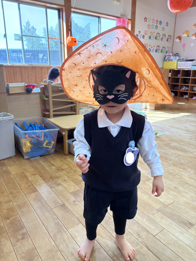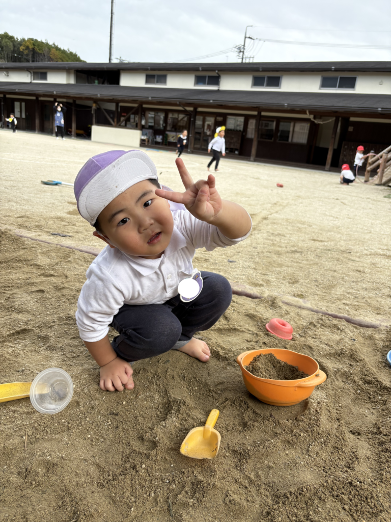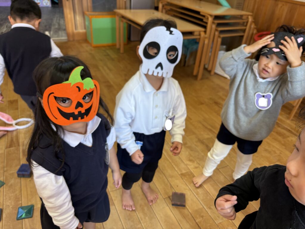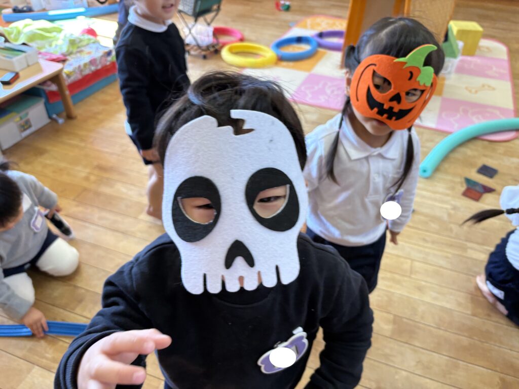 ハロウィンごっこを今も続けて楽しんでいる子、お買い物ごっこをしている子、砂場でごちそう作りする子など、友達との関わりを楽しみながら遊んでいます。
