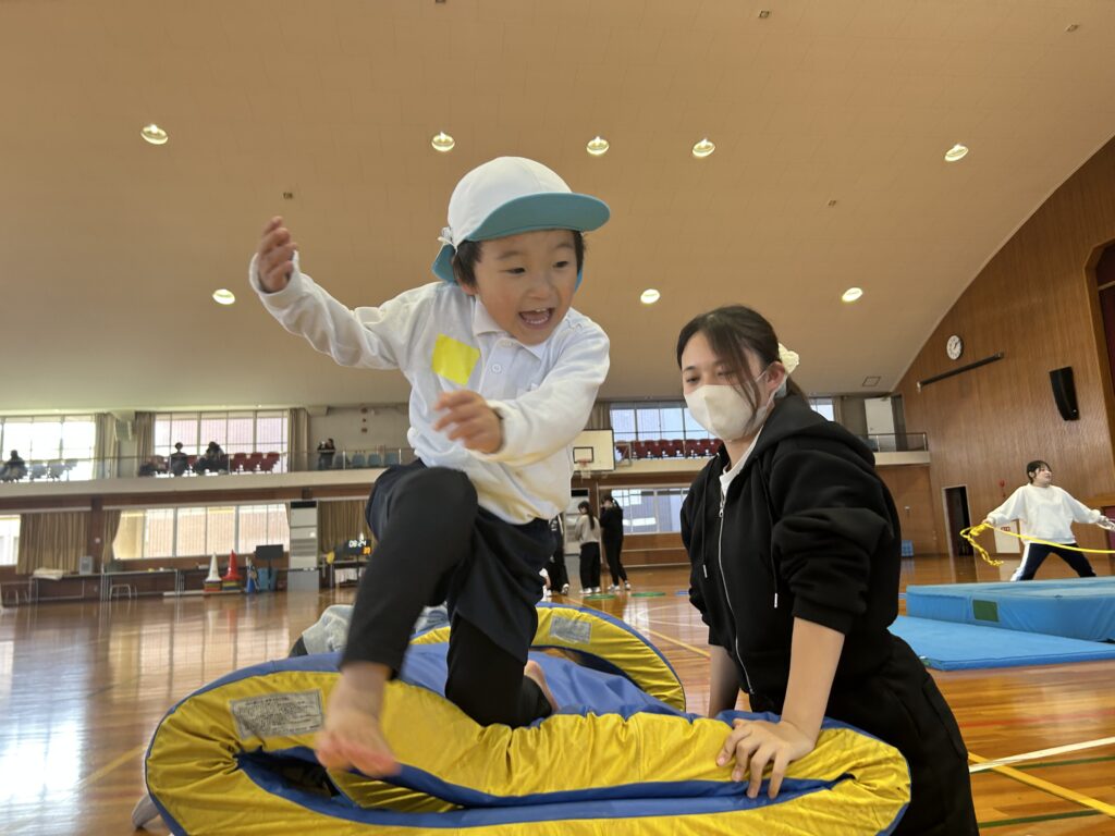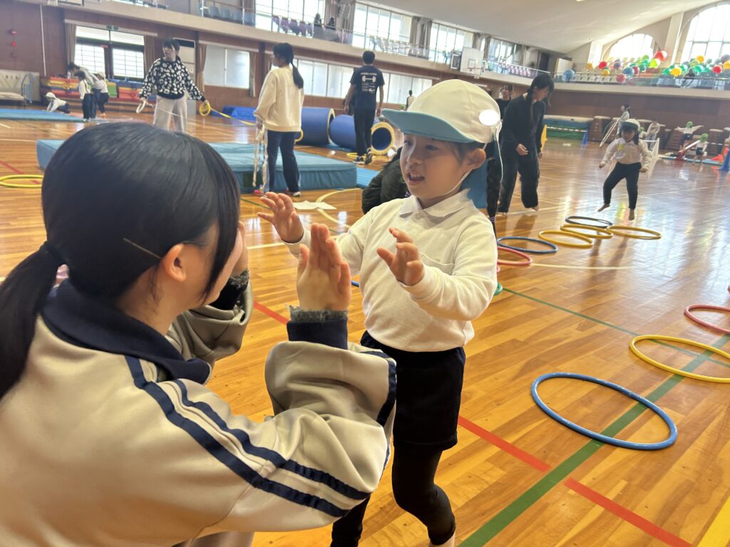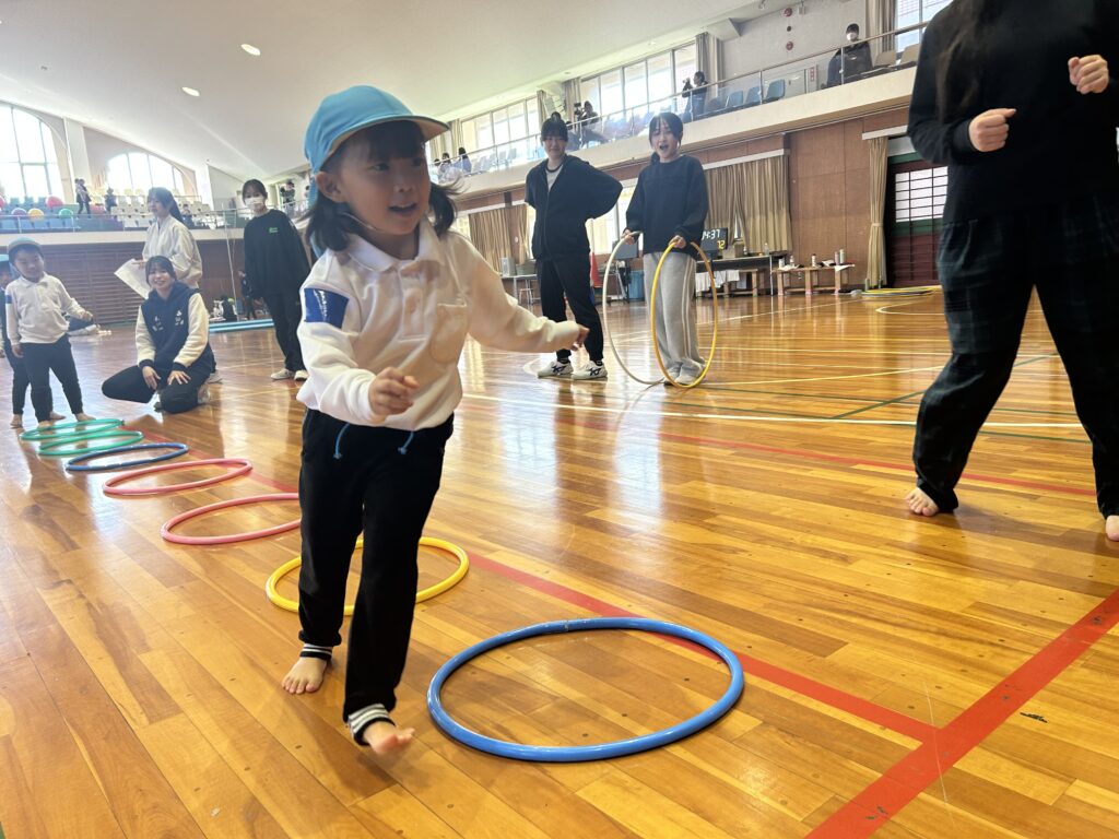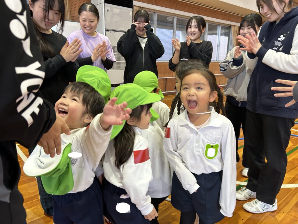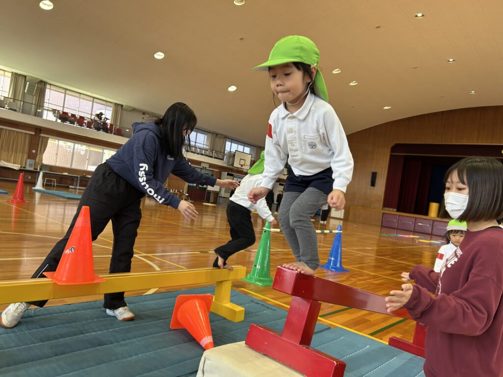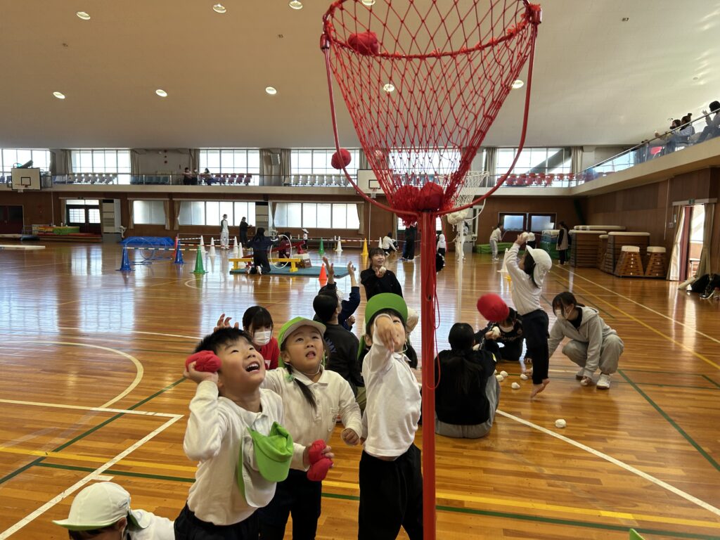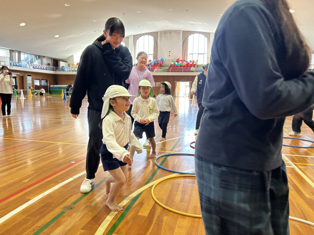 今回は、岡崎女子大学の学生さんが考えた4つの運動遊びを行いました。思いきり体を動かして遊ぶことができ、とても嬉しそうな子どもたちでした(^▽^)/