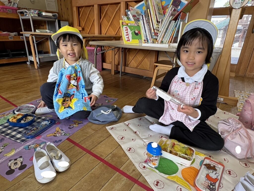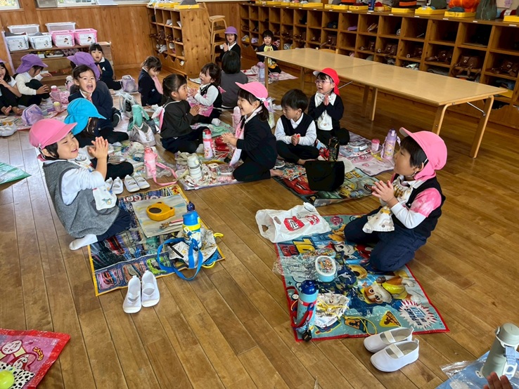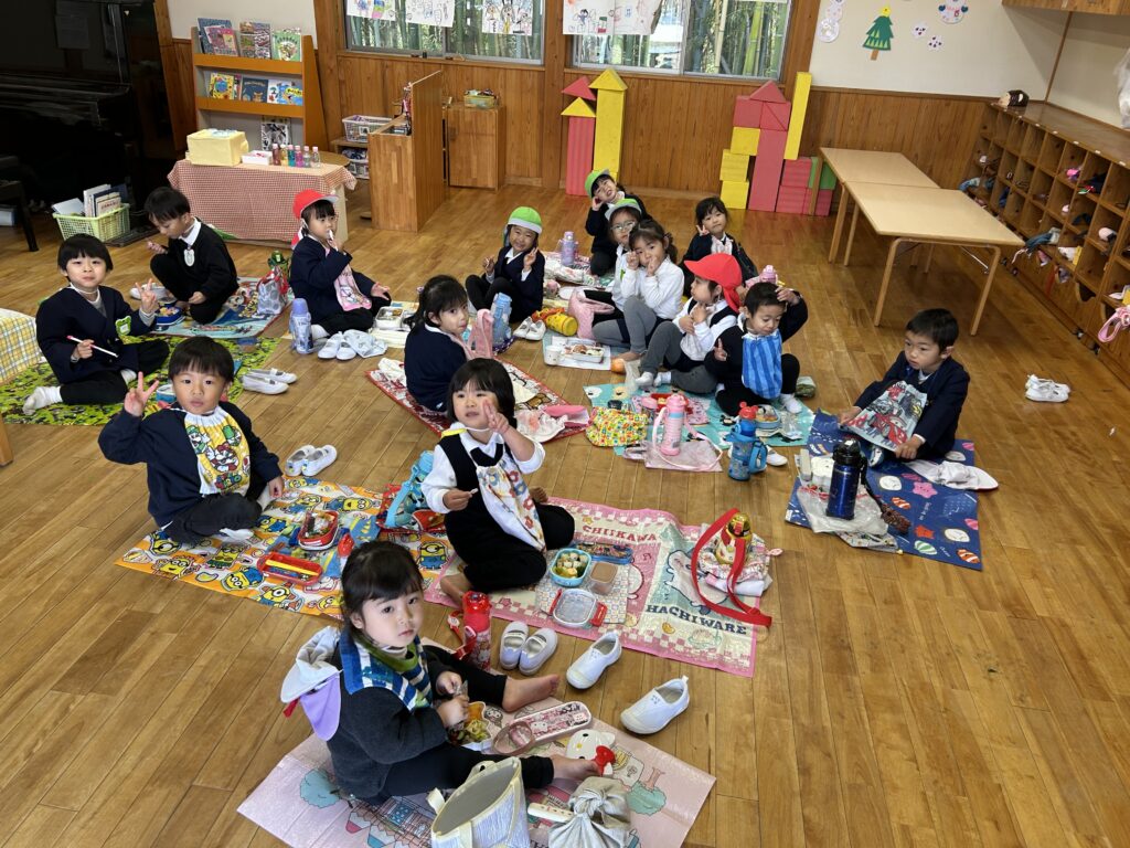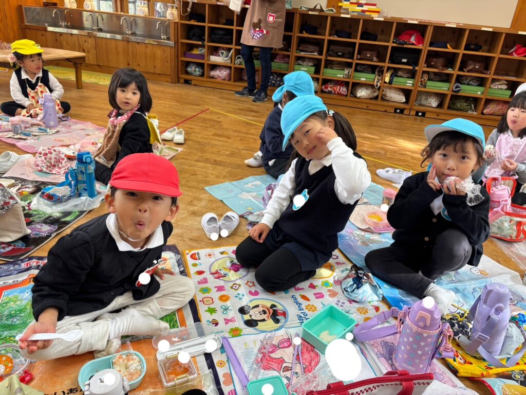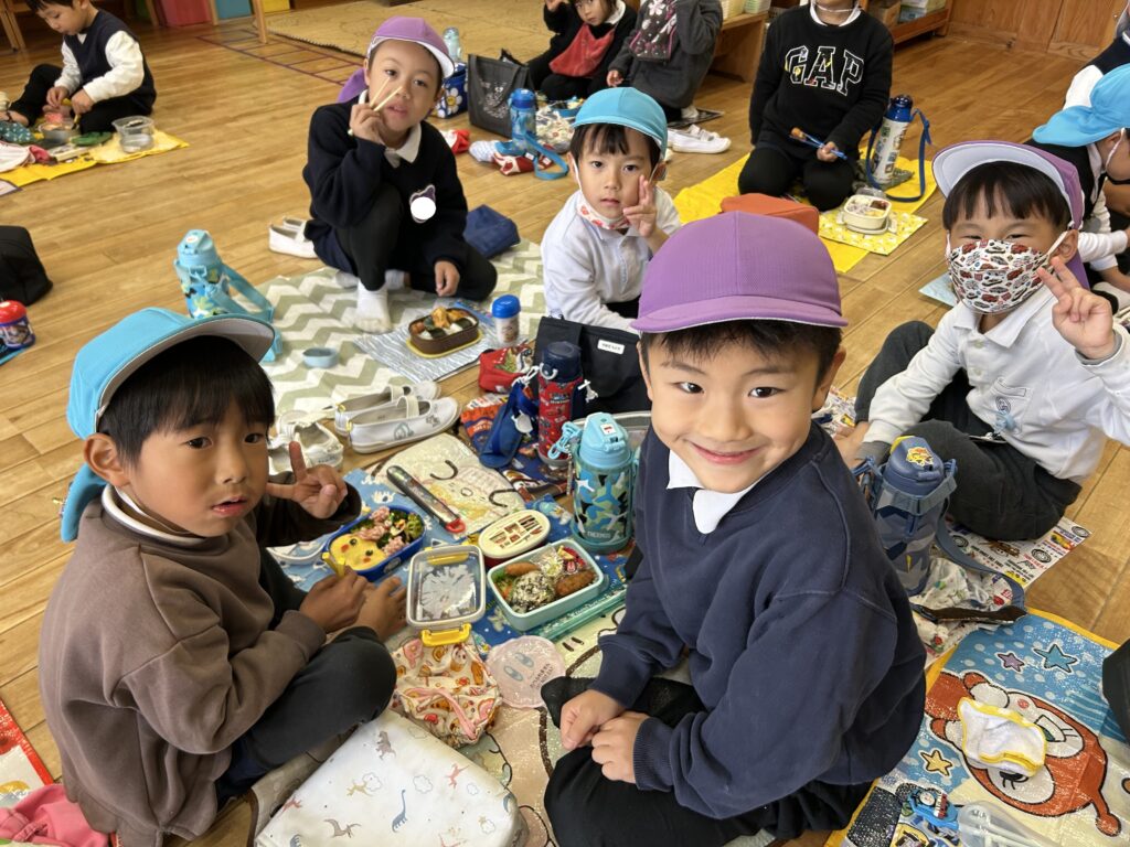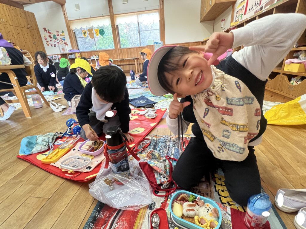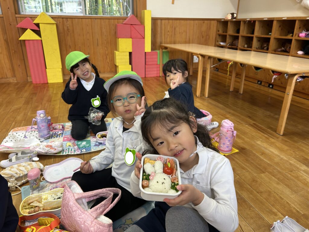 今日は、年少・年中・年長組でオープン弁当をしました。