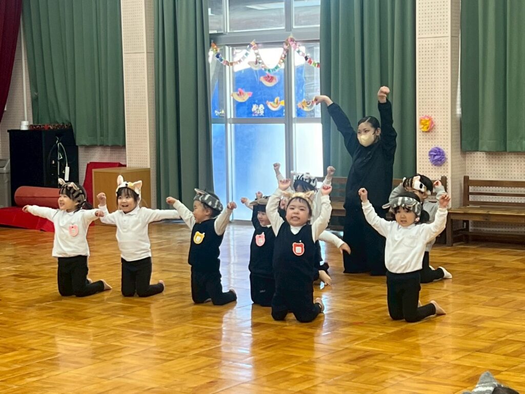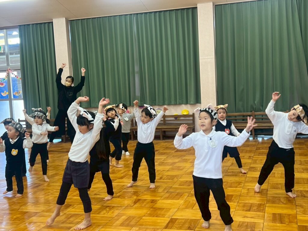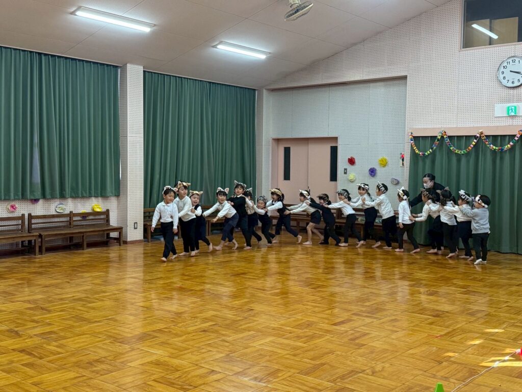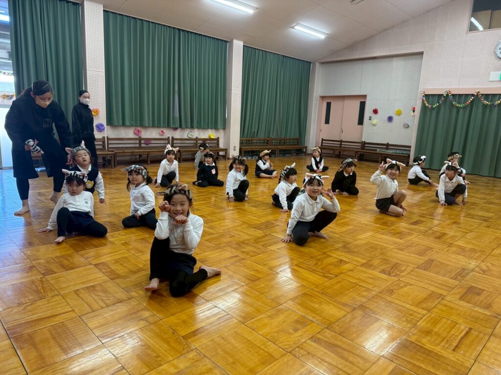 ねこになりきってねこの気持ちで、かわいいねこ姿を見せてくれたダンス教室参加の子どもたちでした。
