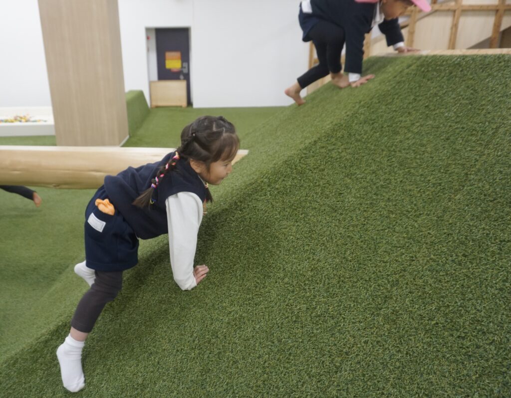 子どもたちが楽しみにしていた、お別れ遠足。数日前から「もうすぐ遠足だね」「楽しみだな」と、伝えていました。こどもっちパークは、屋内の公園のような雰囲気で、全面人工芝で心地の良い空間でした。大好きな友達や先生と一緒にたくさん遊んで、笑顔いっぱいの子どもたち。思いきり体を動かしながら、楽しい時間を過ごしました。