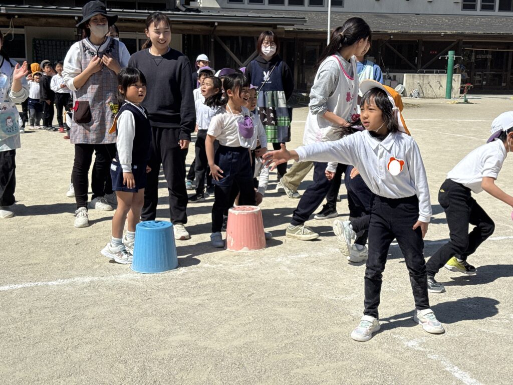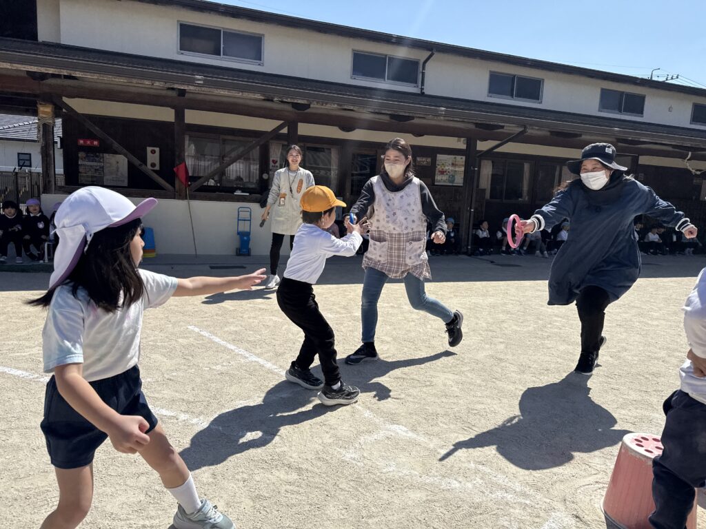 学年は違っても同じチームのお友達を一生懸命応援する姿や、みんなでバトンを繋いで楽しむ姿があり