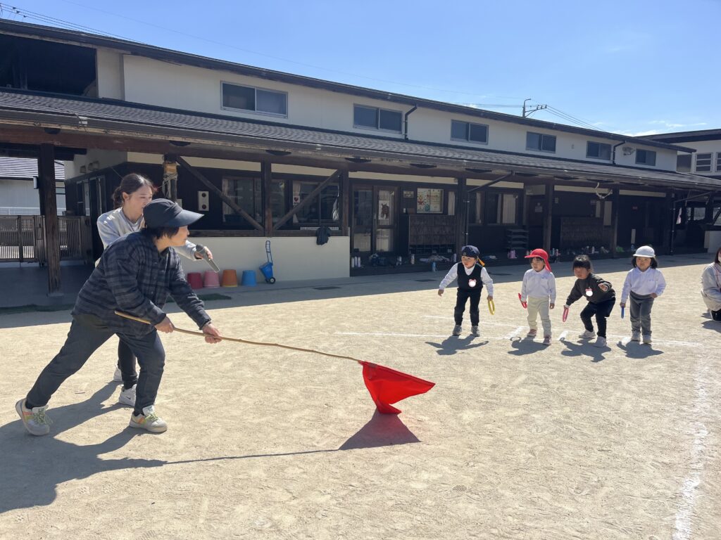 2回戦目は年少ぐみ、年中ぐみ、年長ぐみが一緒のチームなり走りました☆