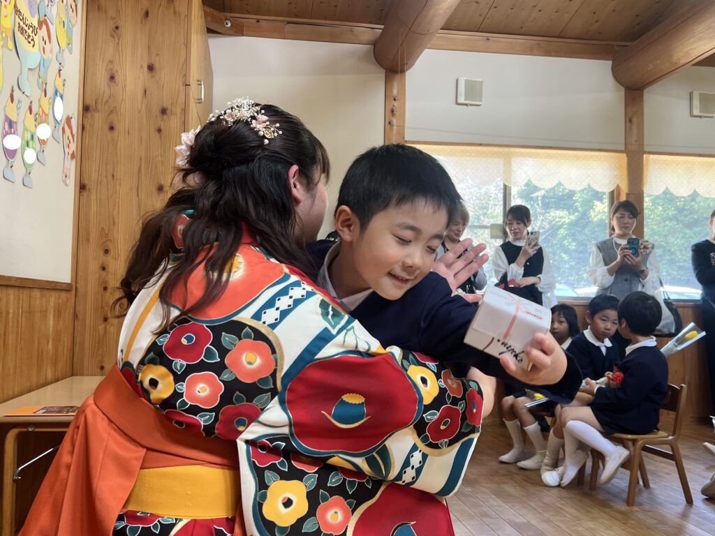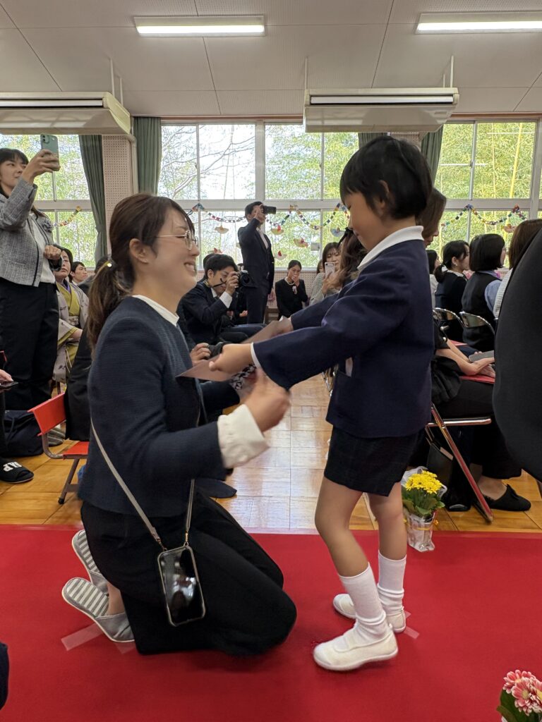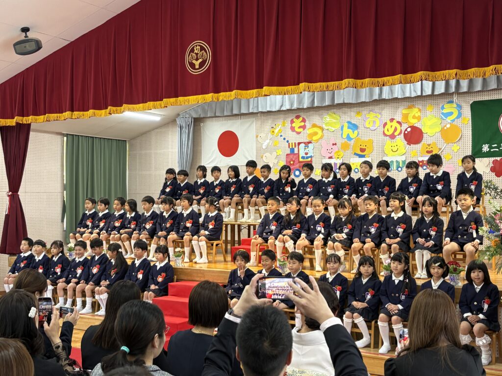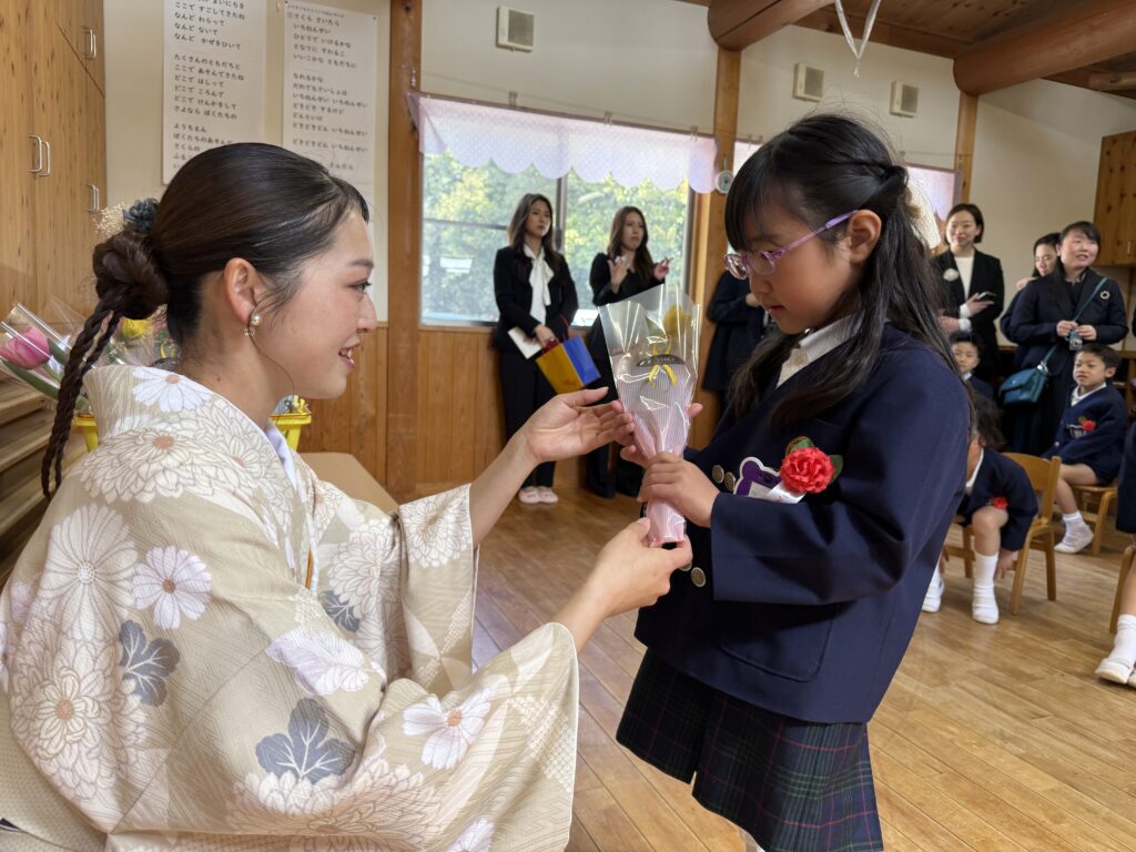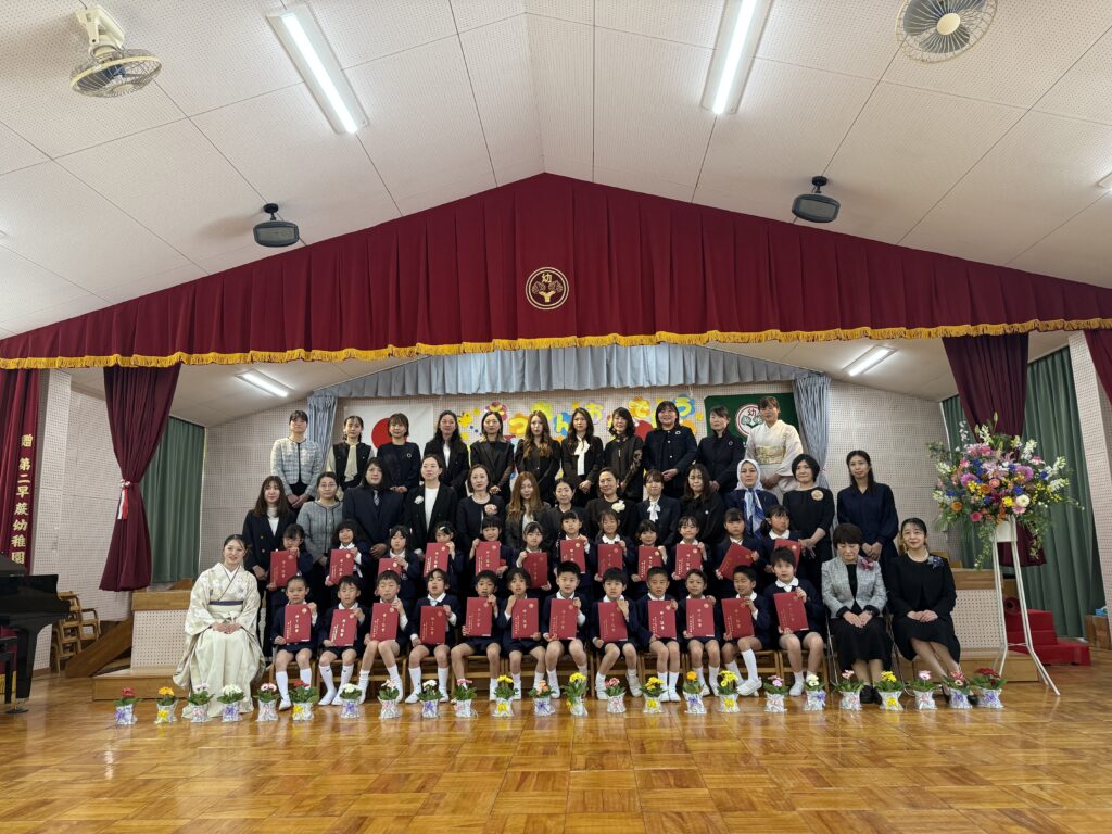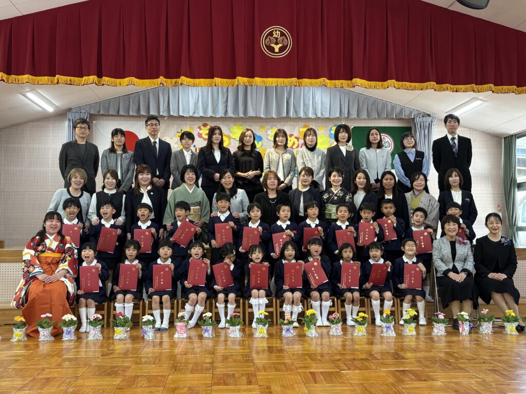 卒園式では、大好きなお家の人や先生に見守られながら、卒業証書を受け取ったり、大きな声でお別れの歌と言葉を行ったりすることができました!”もうすぐ小学生になるんだ”、”大好きな友達、先生ありがとう”という気持ちがいっぱい伝わってくる式になりました。