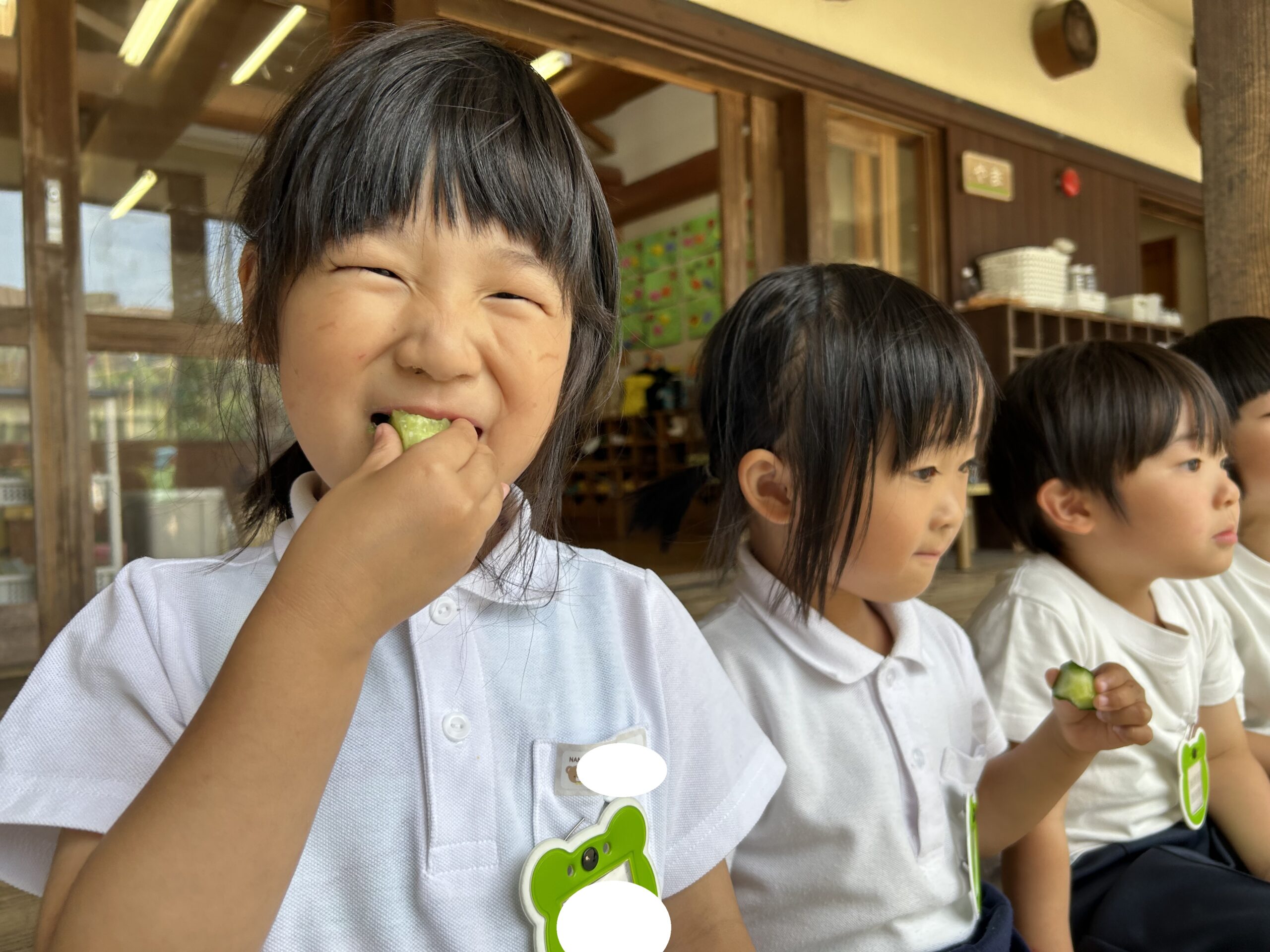 年中組の畑では、きゅうり、とうもろこし、枝豆、トマトがすくすくと育ってきています。 今日は、育ったきゅうりを収穫して、塩で味付けをして食べました! 子どもたちは、「きゅうり美味しい!」「おかわりする!」と、もりもり食べ […]