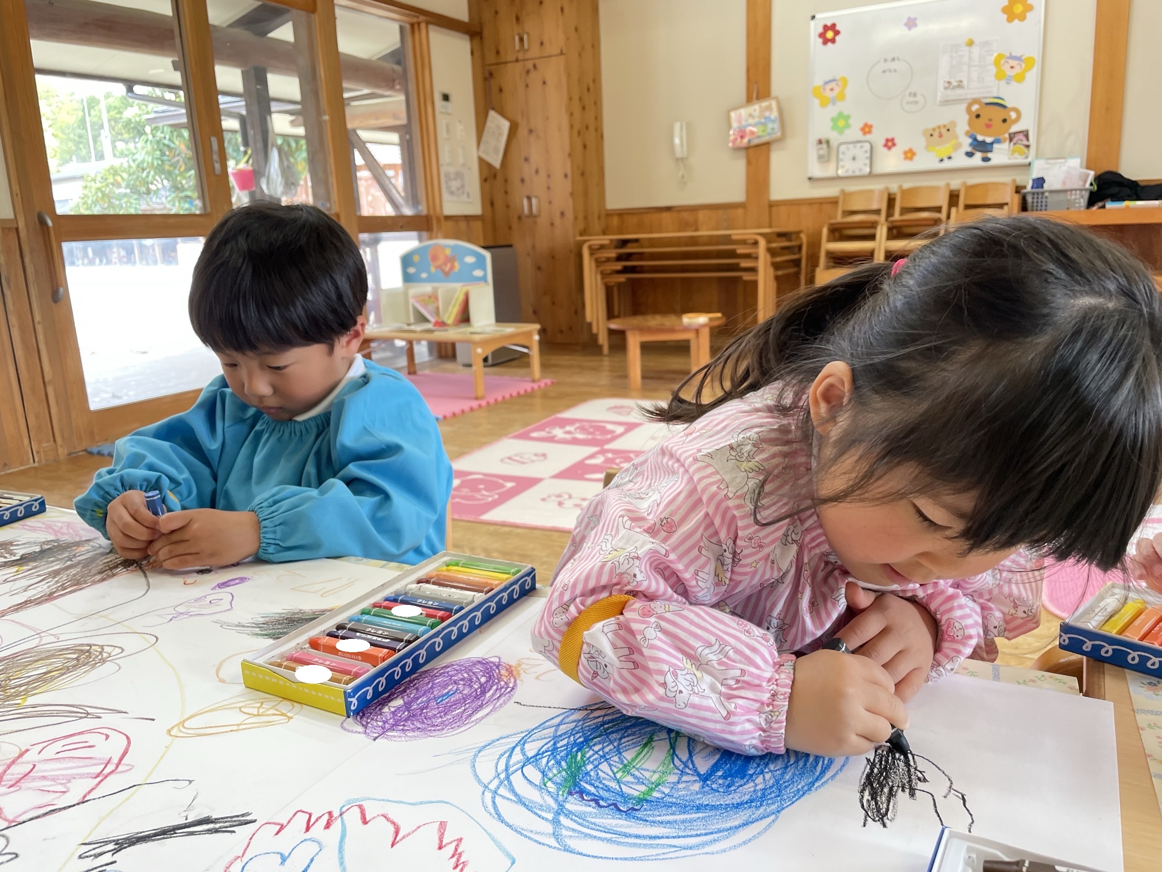 クレヨン遊びを行いました。大きな画用紙に目をキラキラさせる子どもたち。思い思いに好きな線や数字、絵を描いて楽しみました。 みんなが描いた絵はこいのぼりに変身しました!気持ちよさそうに泳いでいますね 今週の金曜日は、こいの […]