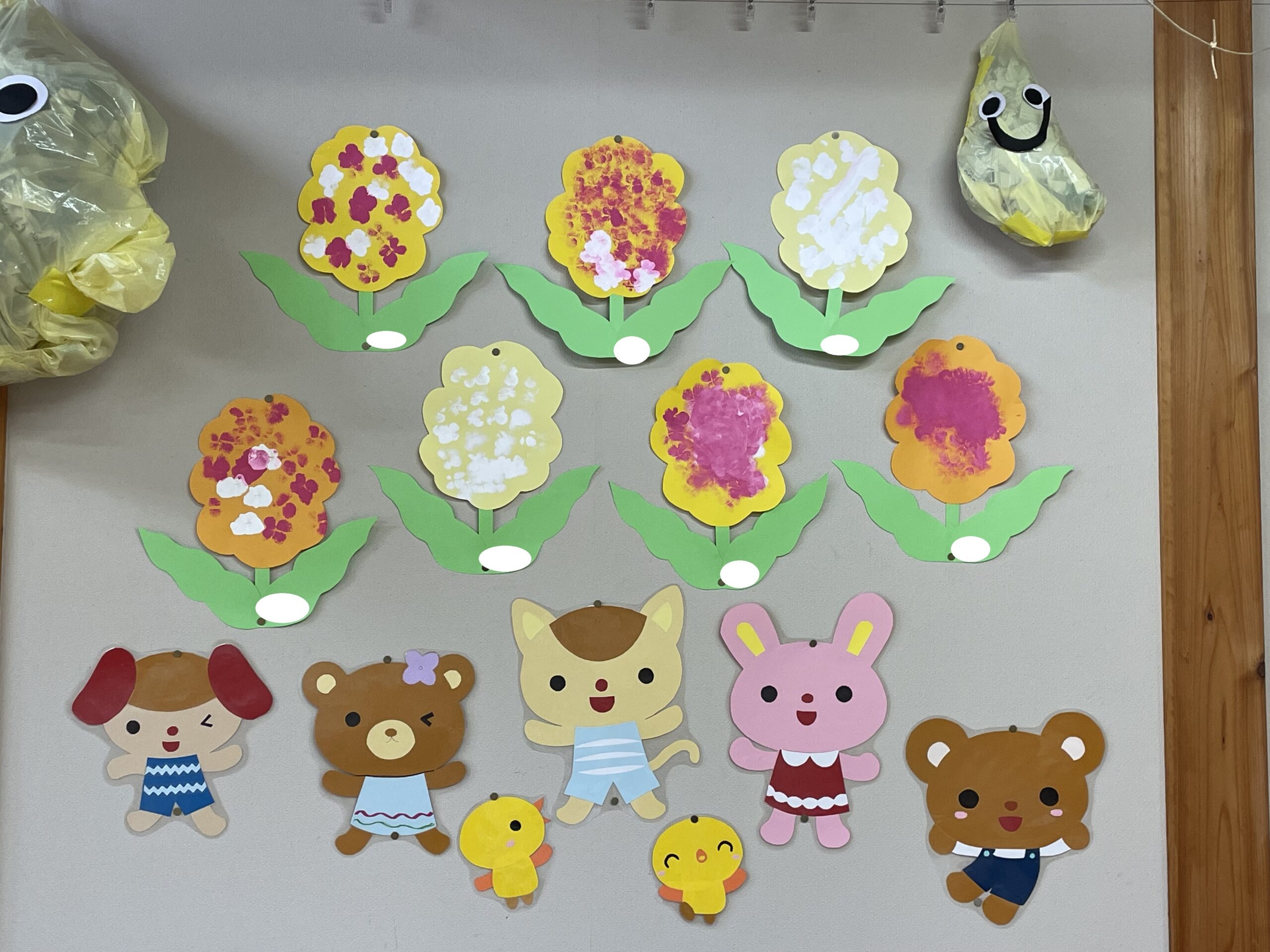 タンポポ、タンポポの綿毛などが園庭で可愛く咲いています! 春の花に興味をもつ子もいたので、子どもたちと菜の花作りを行いました。 自分だけの菜の花を作ることができましたよ♪