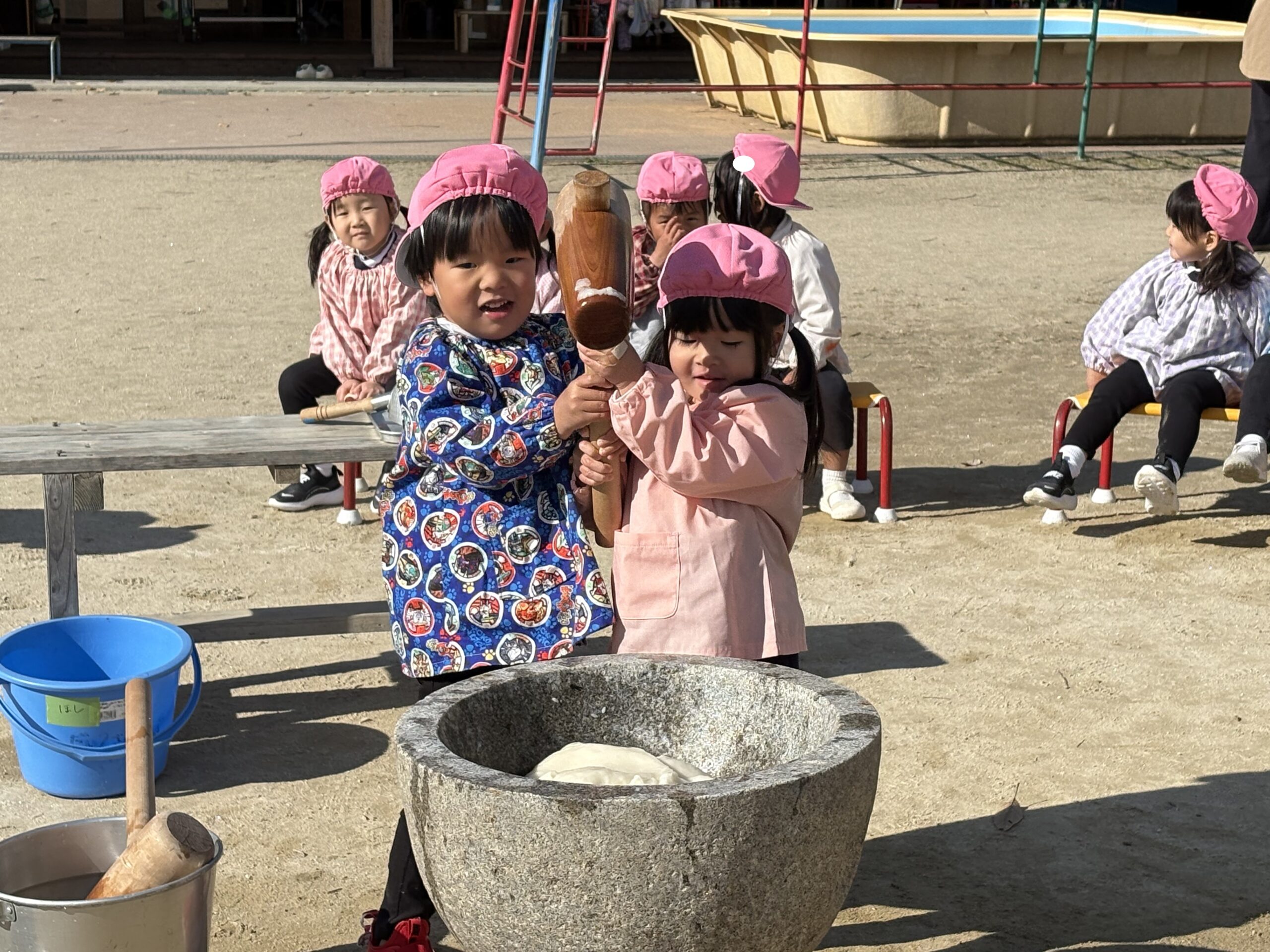 子どもたちが待ちに待ったおもちつき会(^^)/ 前日からもち米を洗い「何個食べようかな?」「俺は100個!」と楽しみにしていました。 朝からアサヒヤさんに火を焚いていただき、登園してくるころには積みあがったせいろや園庭に […]