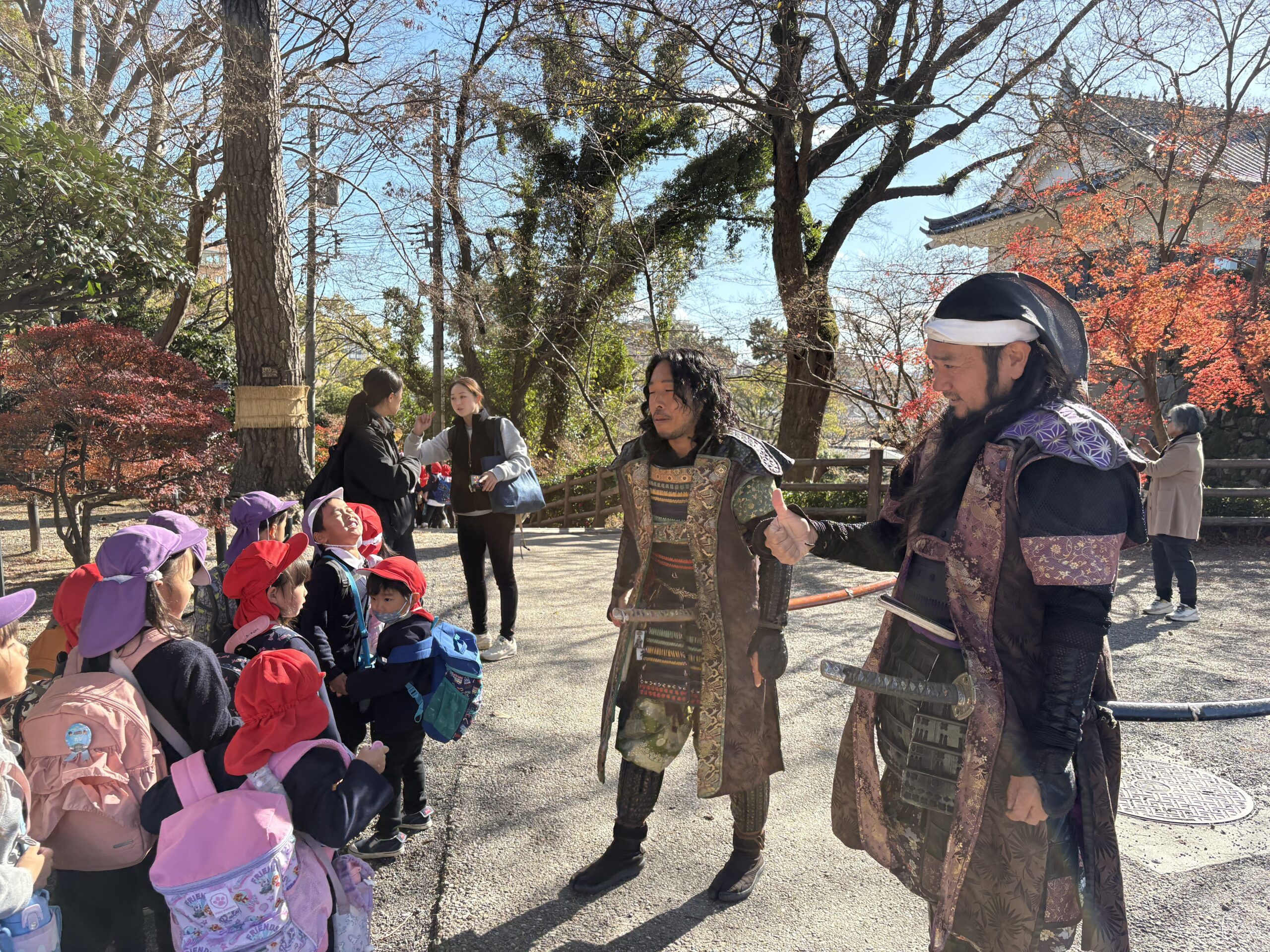 今日は年長組と年少組で岡崎公園に出かけました! 一緒に手を繋いで、岡崎公園の景色を楽しみながら散歩したり、おにぎり給食を食べたり、広場で遊んだりしました。武将隊の方にも会ってお話することができました★ 年少さんが困っ […]