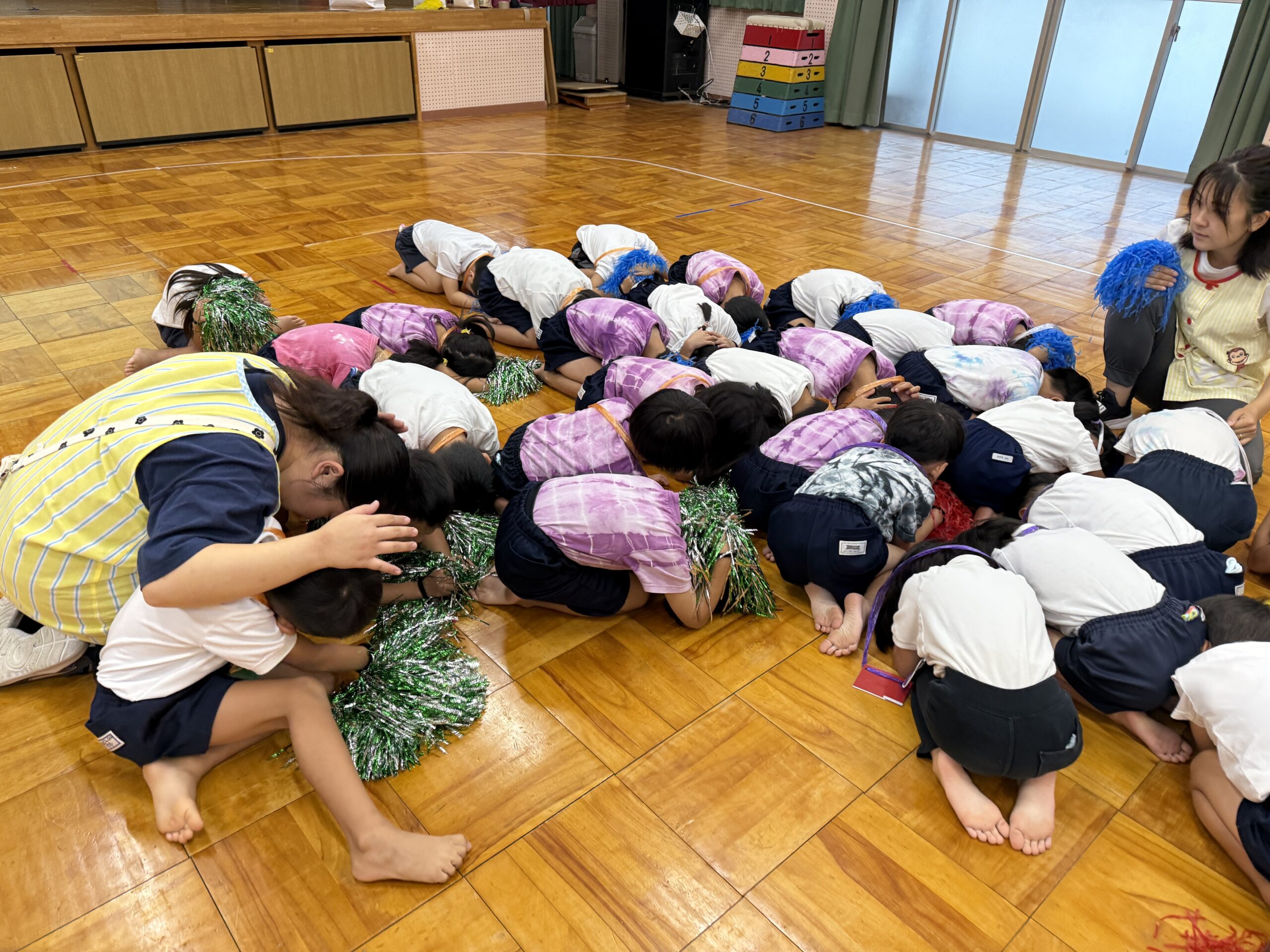 今日は、8・9月生まれの誕生会がありました。 今月の先生たちからのプレゼントは、エンターテイメントショーでした。急に首が落ちてびっくりしたり、選んだカードが飛び出してくるマジックを見たりしました。「きゃー!びっくりし […]