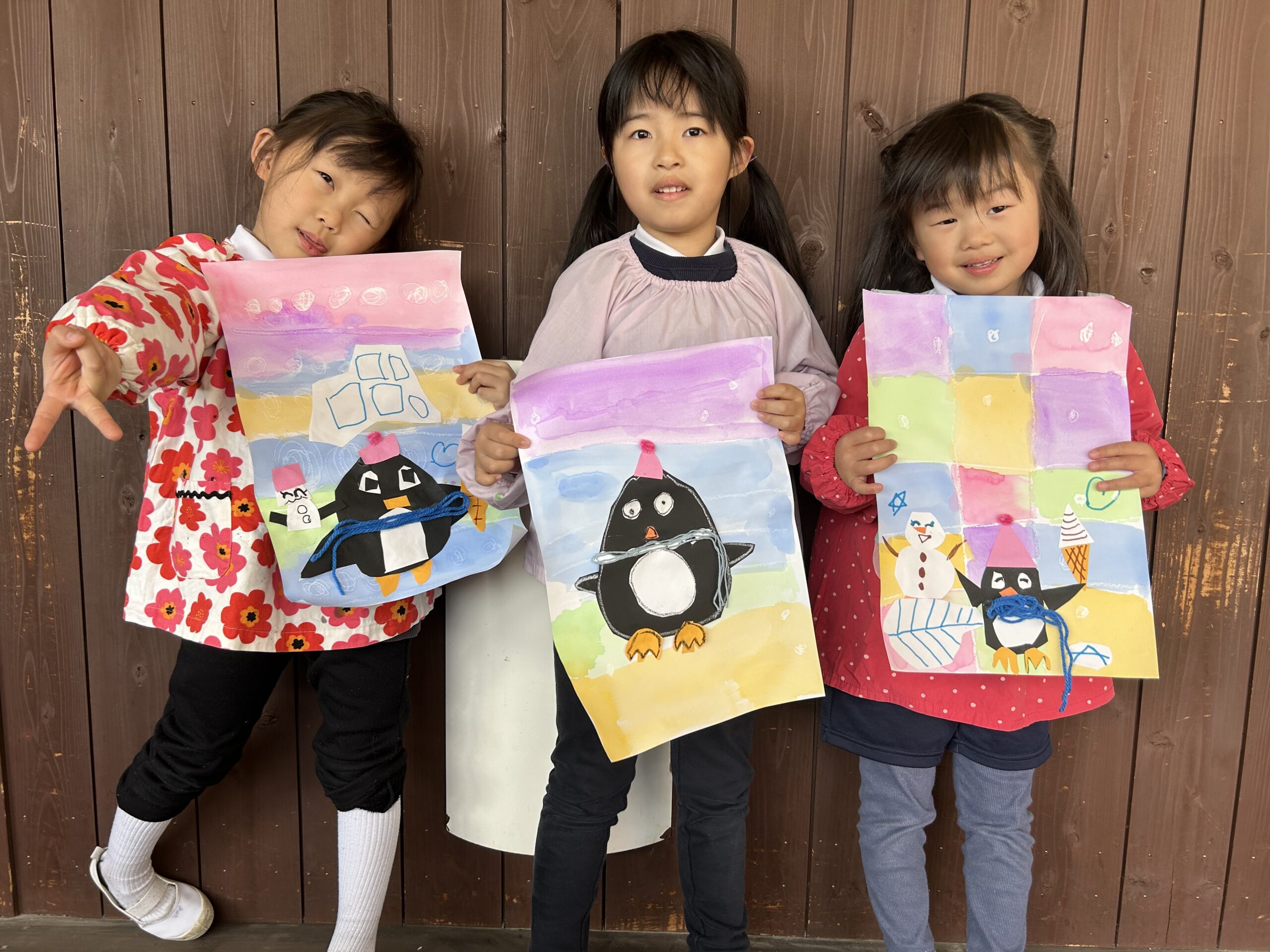 2月の製作はペンギンを作りました。 クレヨンと絵の具で、はじき絵をして、雪の世界を表現しました。ペンギンは一つ一つパーツを描いて、それをハサミで切って作りました。余った画用紙でアイスクリームや氷を作ったり、マフラーやポ […]