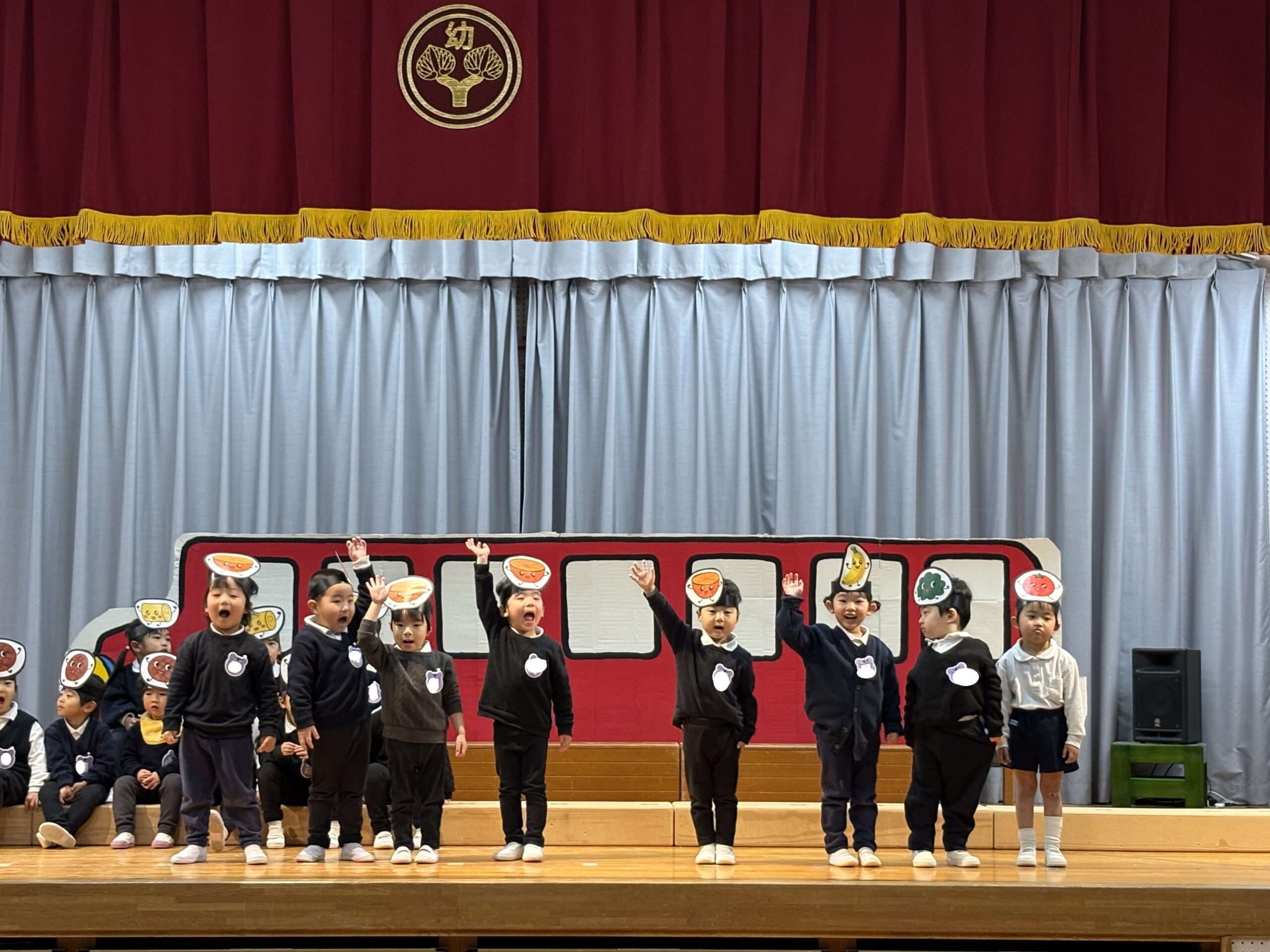 満3りす組の保育参観を行いました。初めての発表会では、おべんとうバスの劇ごっこをしました。 子どもたち1人ひとりが好きなおべんとうの具になって、元気いっぱいセリフや返事をし、とても可愛くとても立派に発表することができまし […]