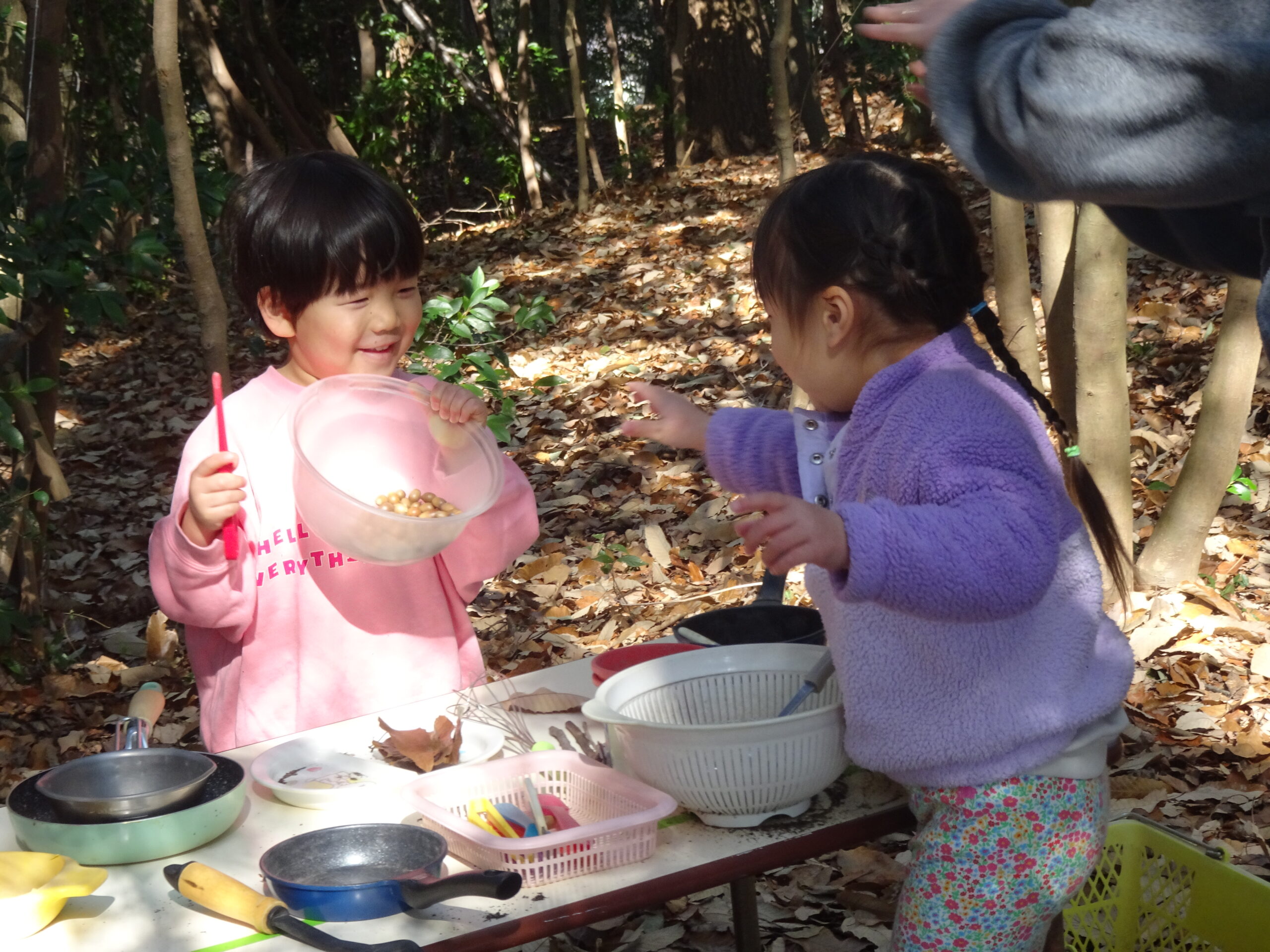 最近は気温が下がり、幼稚園に雪が降ることもありますが、子どもたちは寒さに負けず、過ごしています。 砂場遊びでは、みんなで大きな山を作り、可愛い雪だるまを作ったり、年長さんがリレーをしているのを見て、「私たちもやりたい」と […]