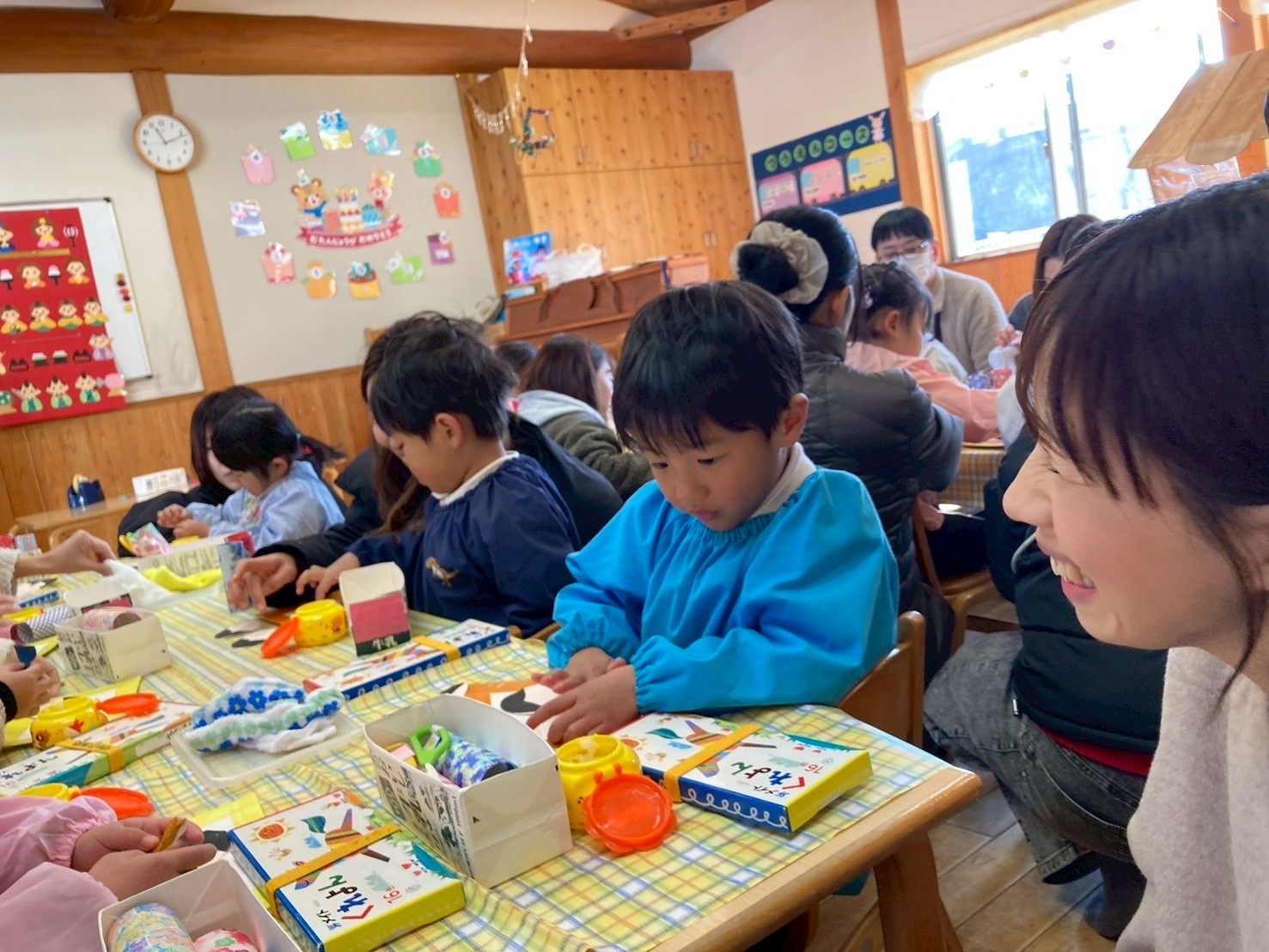 お家の人に、遊んでいる姿や生活をしている場面を見ていただきました。子どもたちは、お家の人がくることを楽しみにしていました。 今回は、お家の人と一緒におひなさまを作りました。「おひなさまの顔はこんな感じ?」「ハサミも使える […]