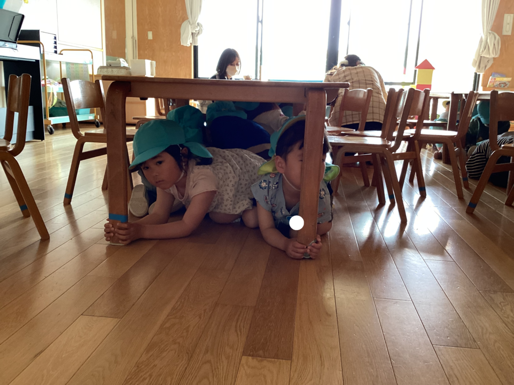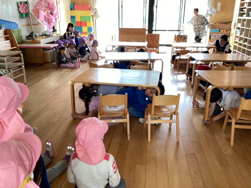 年長組が真剣に避難する様子をじっと見つめ、避難の仕方を学びました🌟