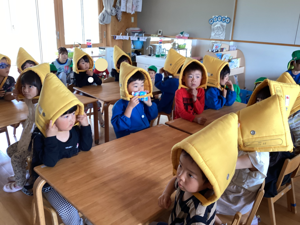 年長組が真剣に避難する様子をじっと見つめ、避難の仕方を学びました🌟