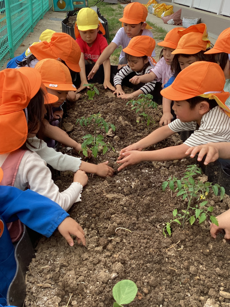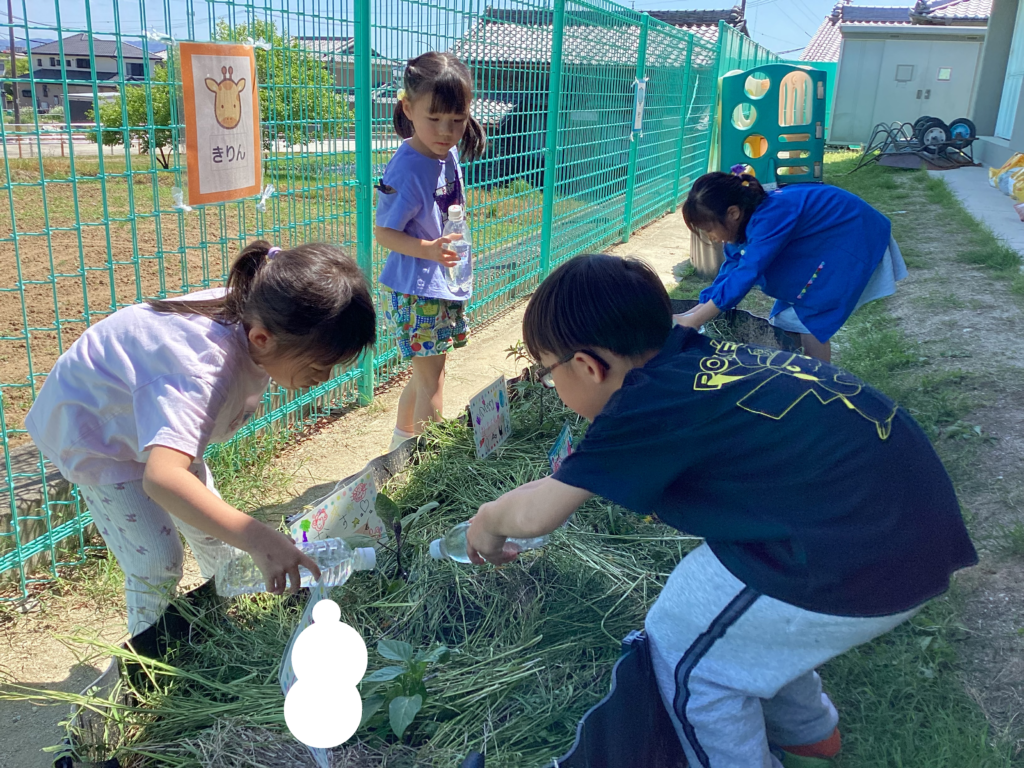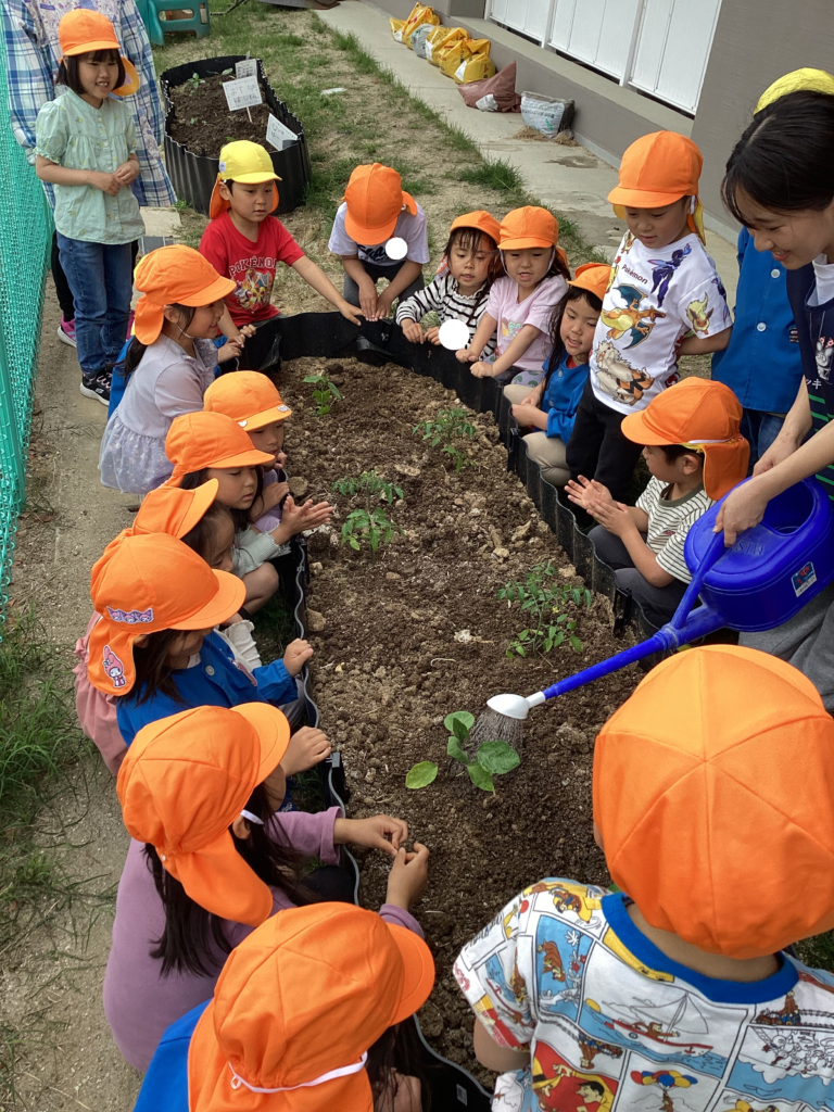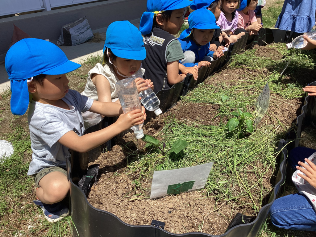 子ども達は、「葉っぱが紫だからナスかな?」、「こっちがピーマンかな?」など想像を膨らませながら楽しみにしています☆