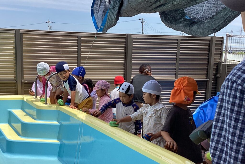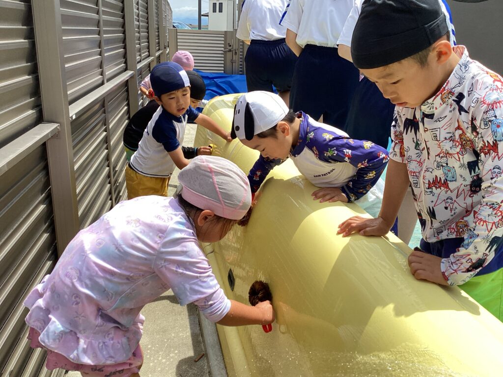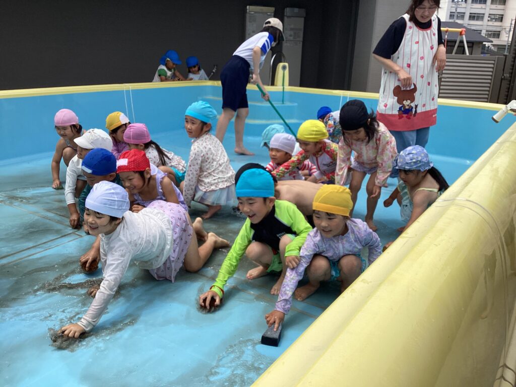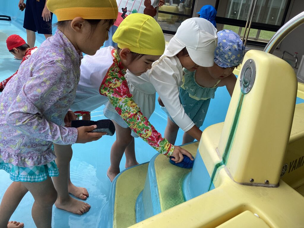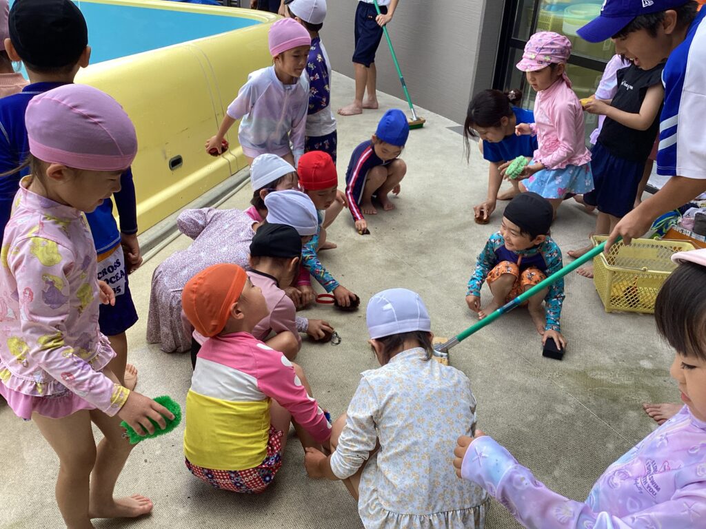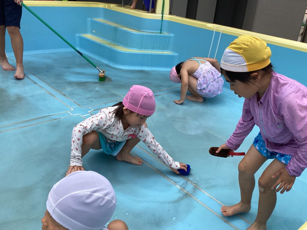 10日のプール開きの前に、年長さんみんなでプール掃除をしました!