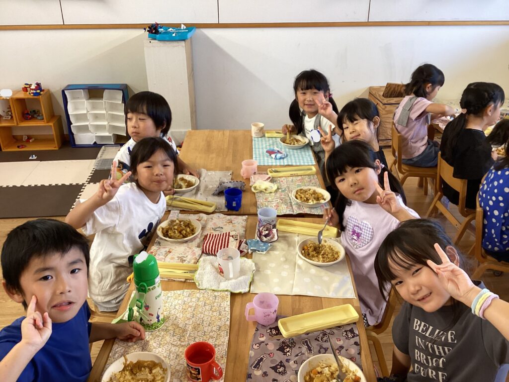 みんなで協力して作ったカレーはいつもより美味しかったようです☺