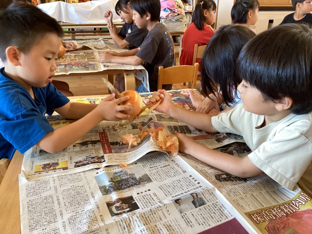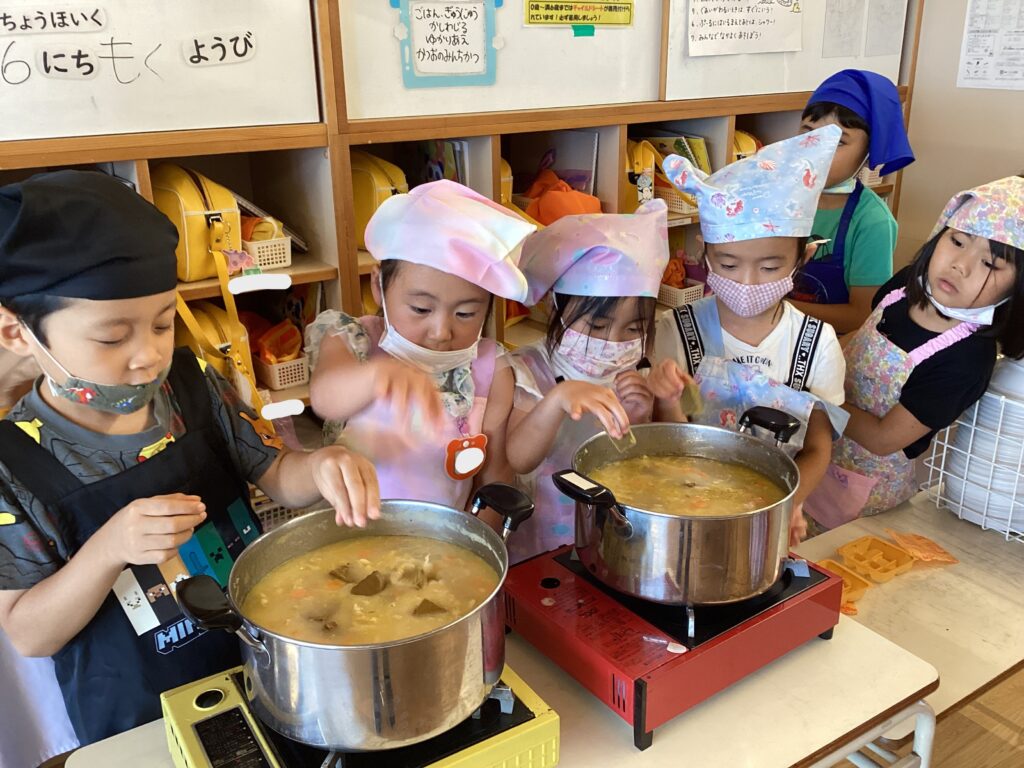 収穫したじゃがいもとたまねぎを使って、みんなが楽しみにしていた「カレー作り」を行いました♪