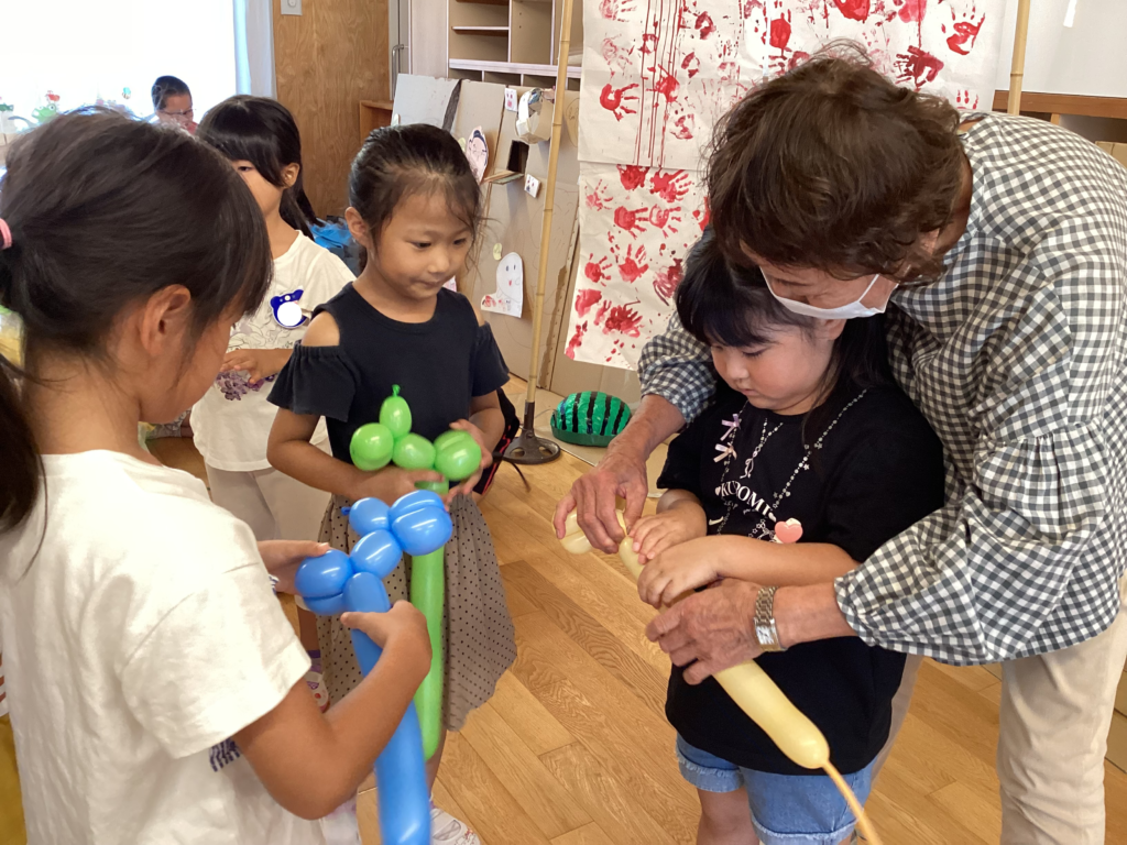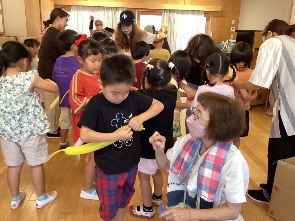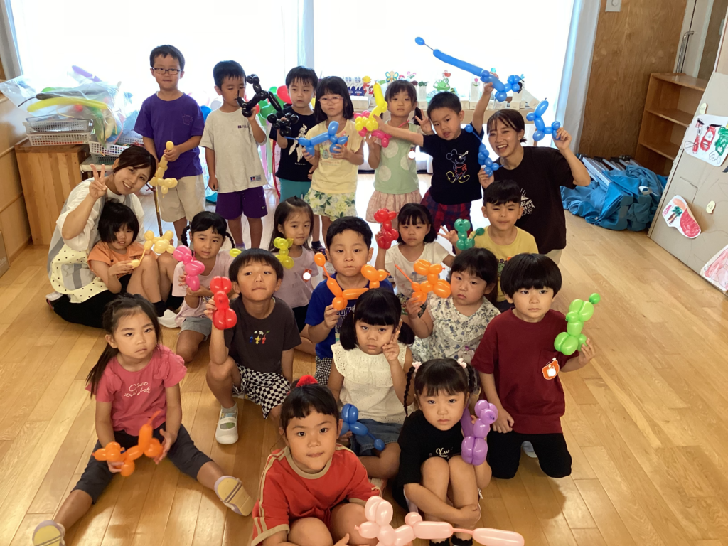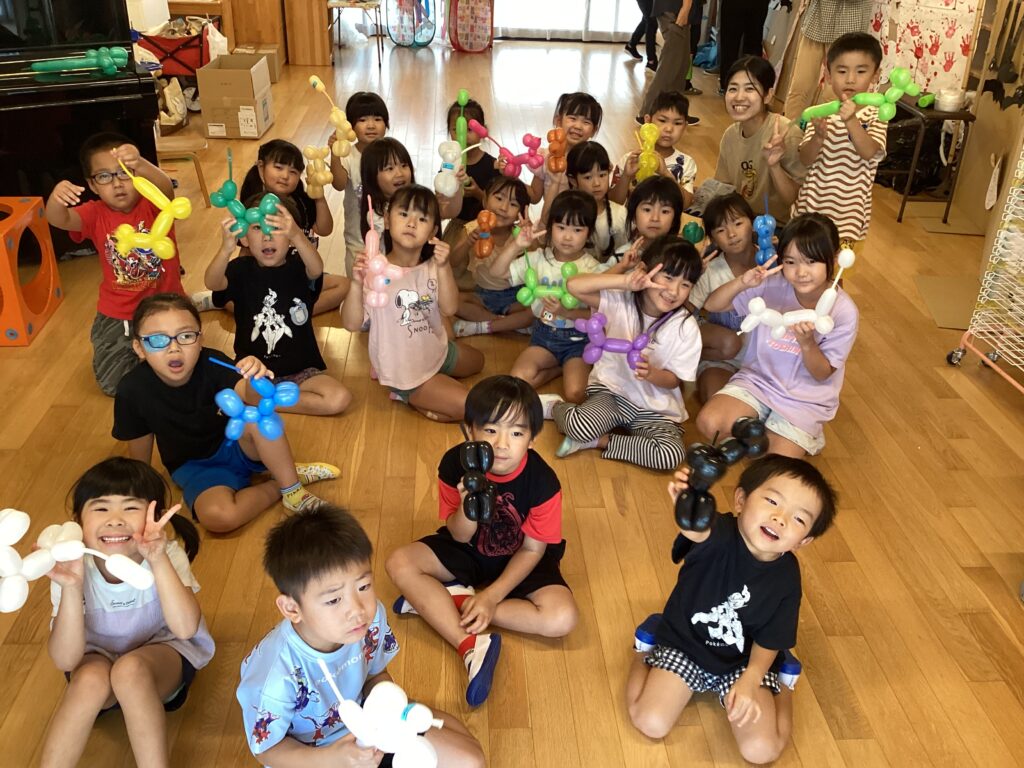 年長組はバルーンアート体験で犬を作りました🐶顔や体の大きさを考えたりしっぽの形を工夫したりして、個性豊かな犬が出来ました!
