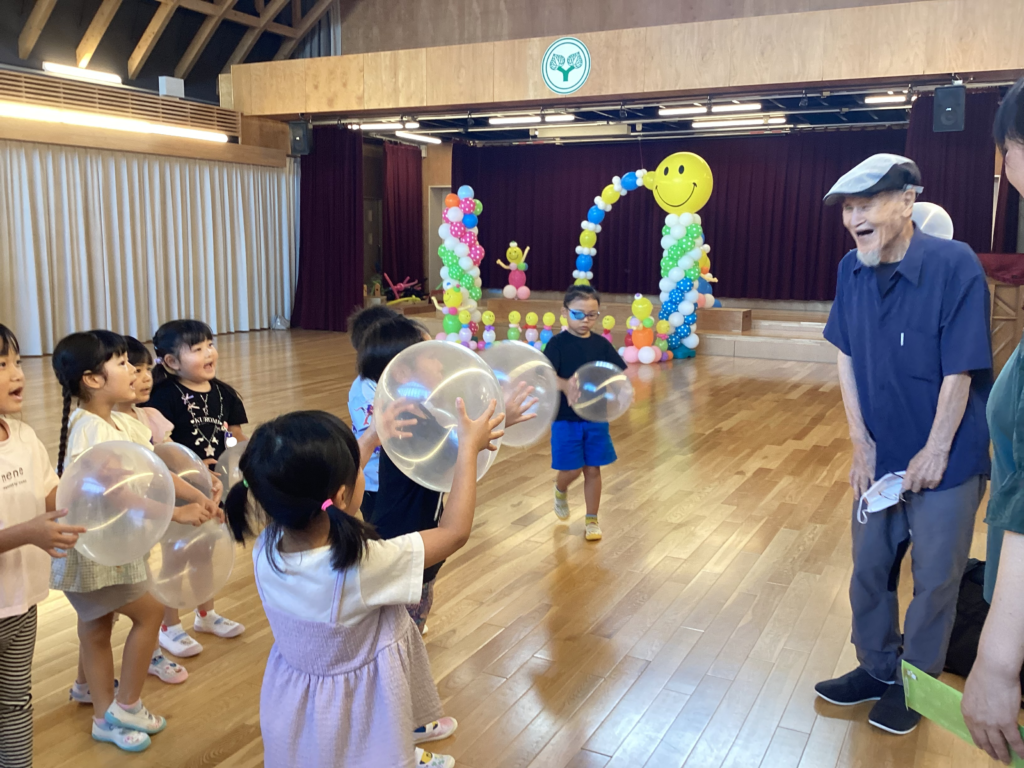 ロケット型風船を的めがけて投げたり、ジャイロという1円玉やおはじきが入った風船を回したりして楽しみました🎈