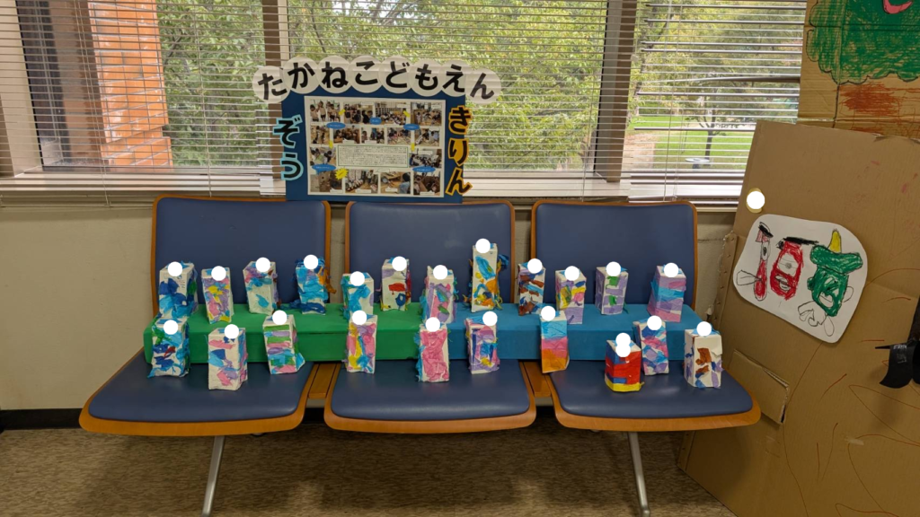 また園で作った作品も飾り、たくさんの方にみてもらいました♪
