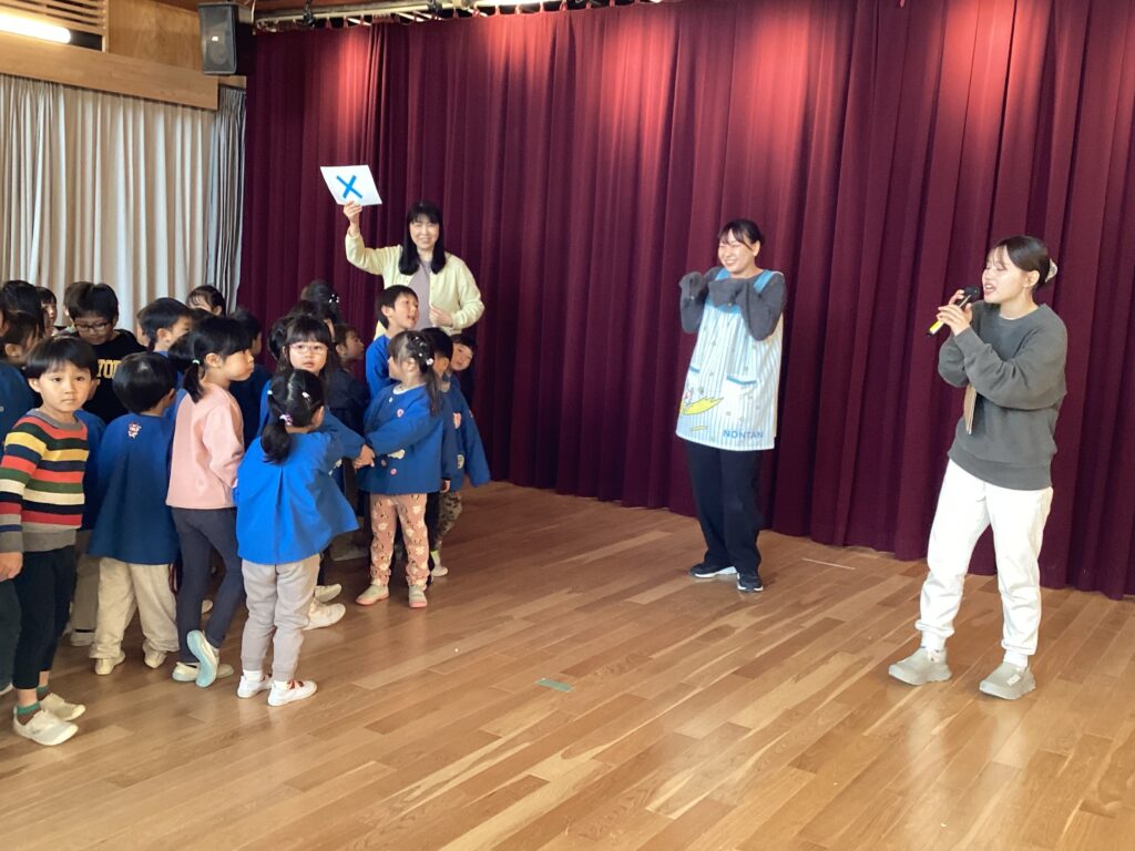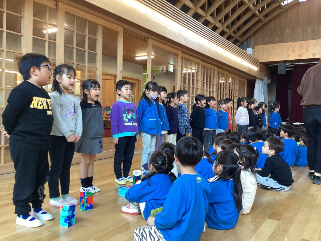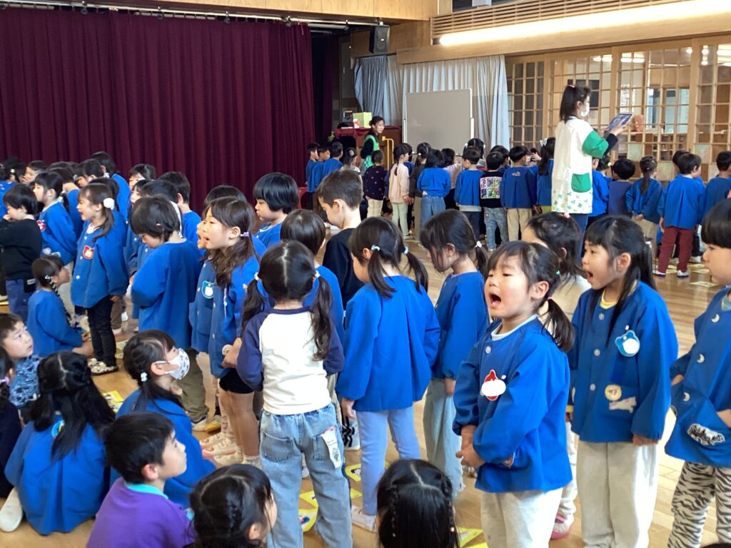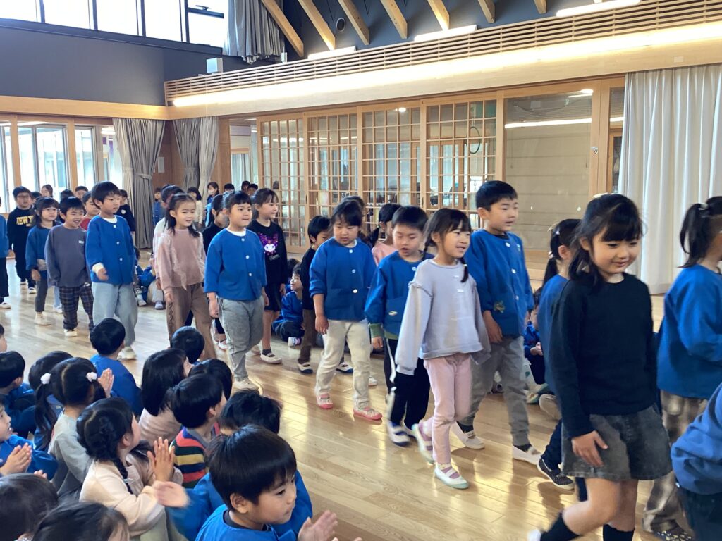 最後は歌のプレゼント🎵年少・年中組から『1年生おめでとう』の歌を送ります。