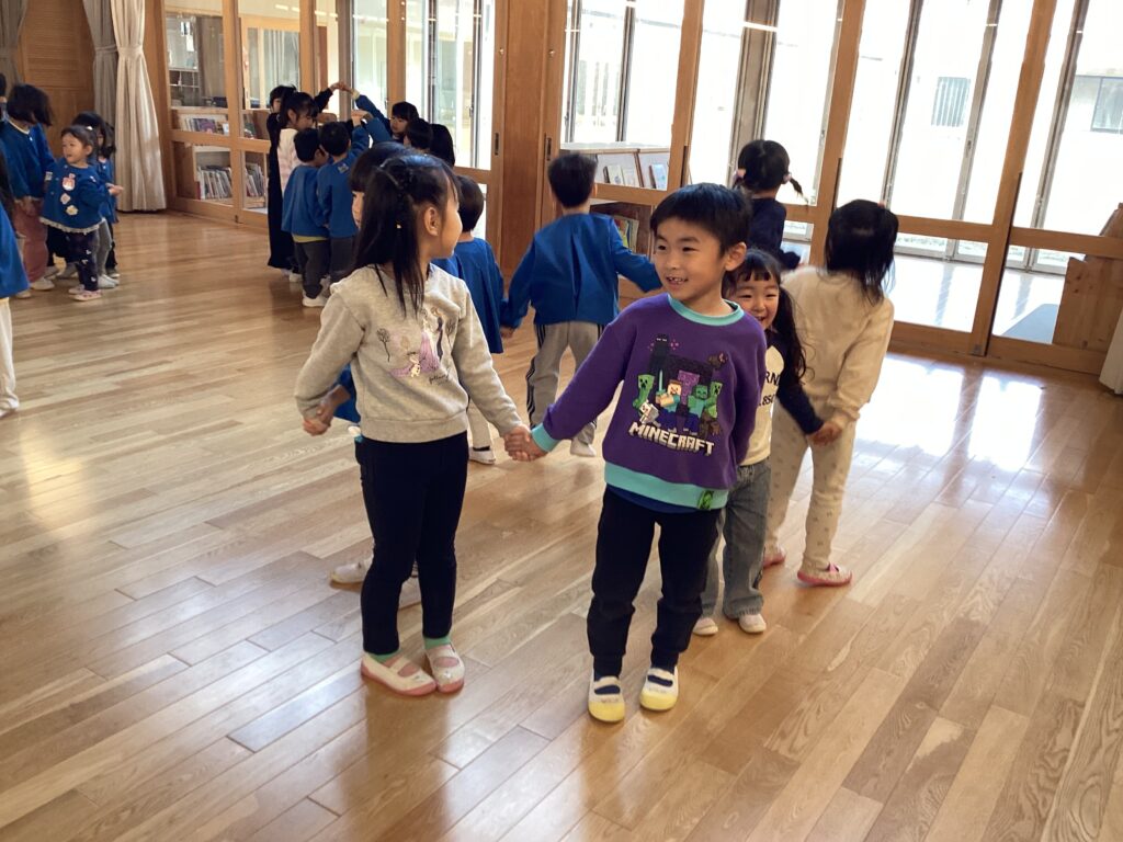 最初は『なべなべそこぬけ』したよ!できるかな?