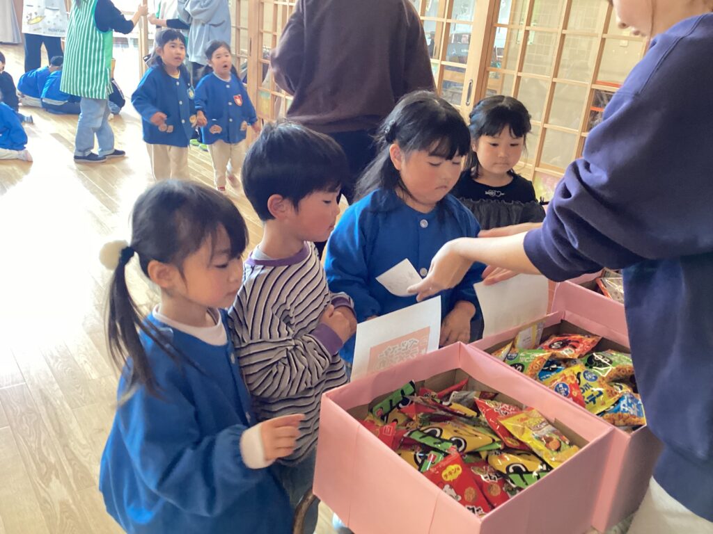 ビンゴしたペアからお菓子を選んだよ😋