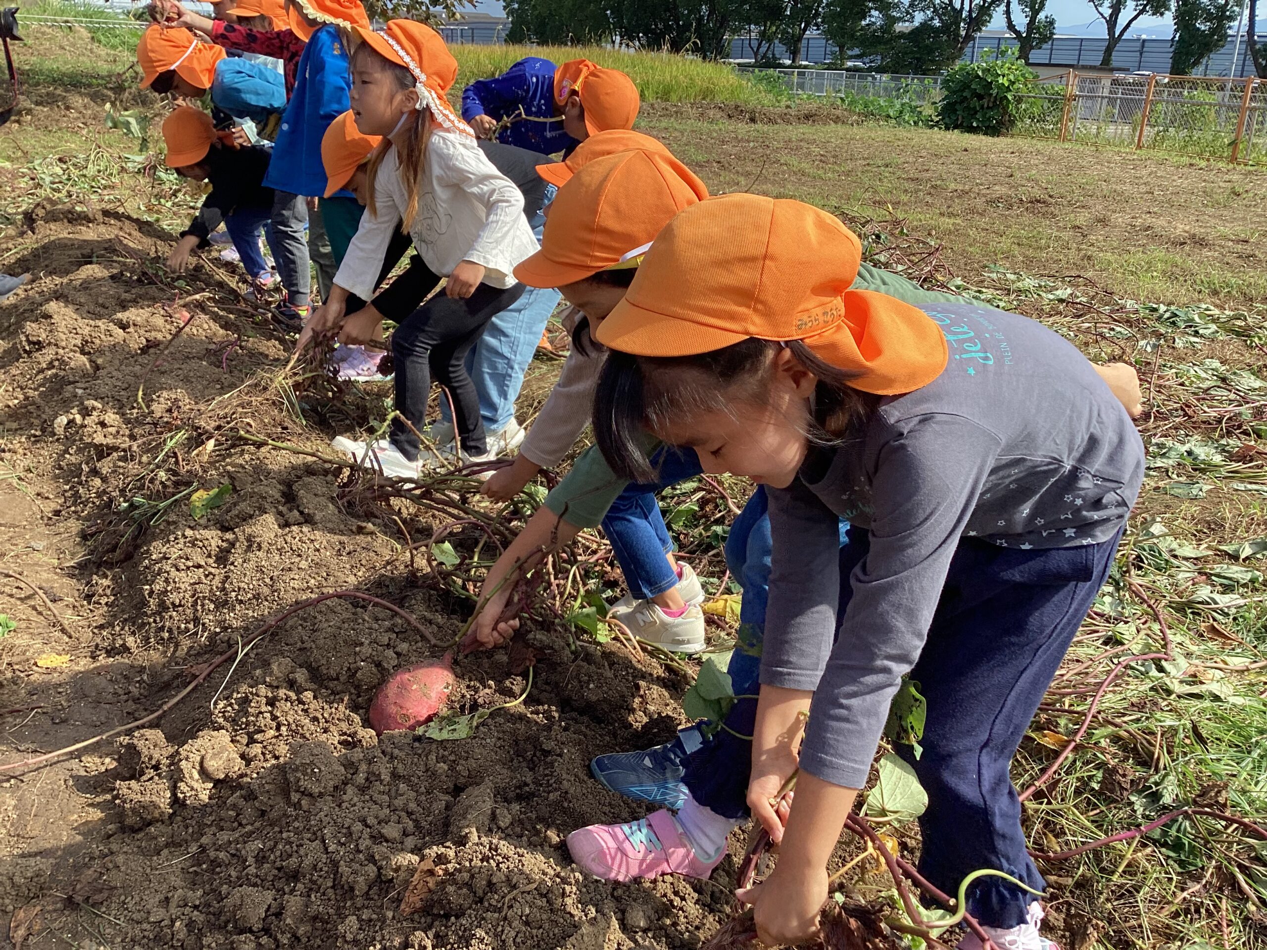 ペアの子と一緒に畑へさつまいも掘りにいきました♪ 大きく育っていたさつまいもを見て、子ども達は大喜び! 「こんなに大きいのが掘れた!」「こっちにもまだあるよ!」と夢中になって掘り進め、たくさん収穫できましたἶ […]