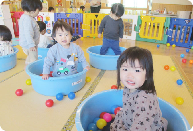 健全な心身の発達を図り、情緒の安定した生活ができる環境充実に取り組んでいます。