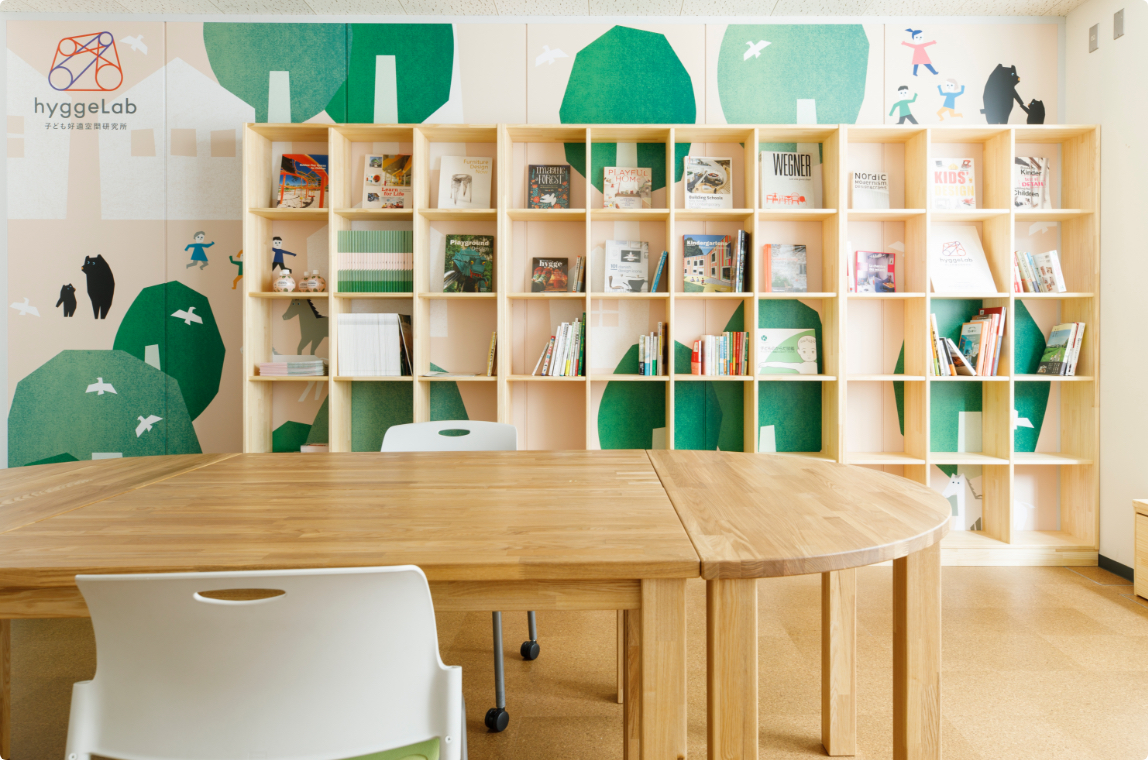 “hygge”のノウハウが蓄積された資料が常備されており、ミーティングなどを行えるスペースになっています。
