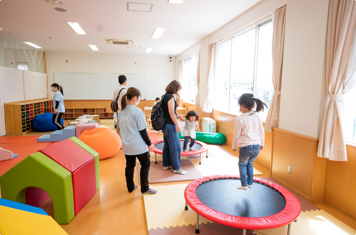 「にこにこデー」「わくわくデー」などの活動日を設けています。支援を必要とする親子の居場所づくりを目指していきます。