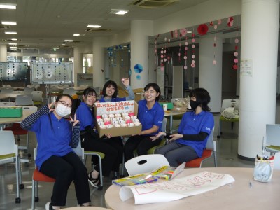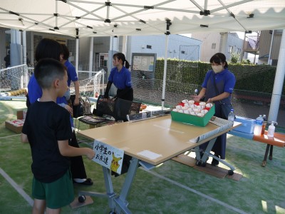 学友会執行部の学生が、未就学園児さんから児童まで、幅広い子どもたちに、楽しんで貰えるピンポン玉入れゲームを出店しました。