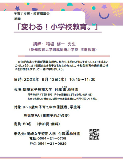 「変わる!小学校教育。」子育て支援・教育講演会のお知らせ