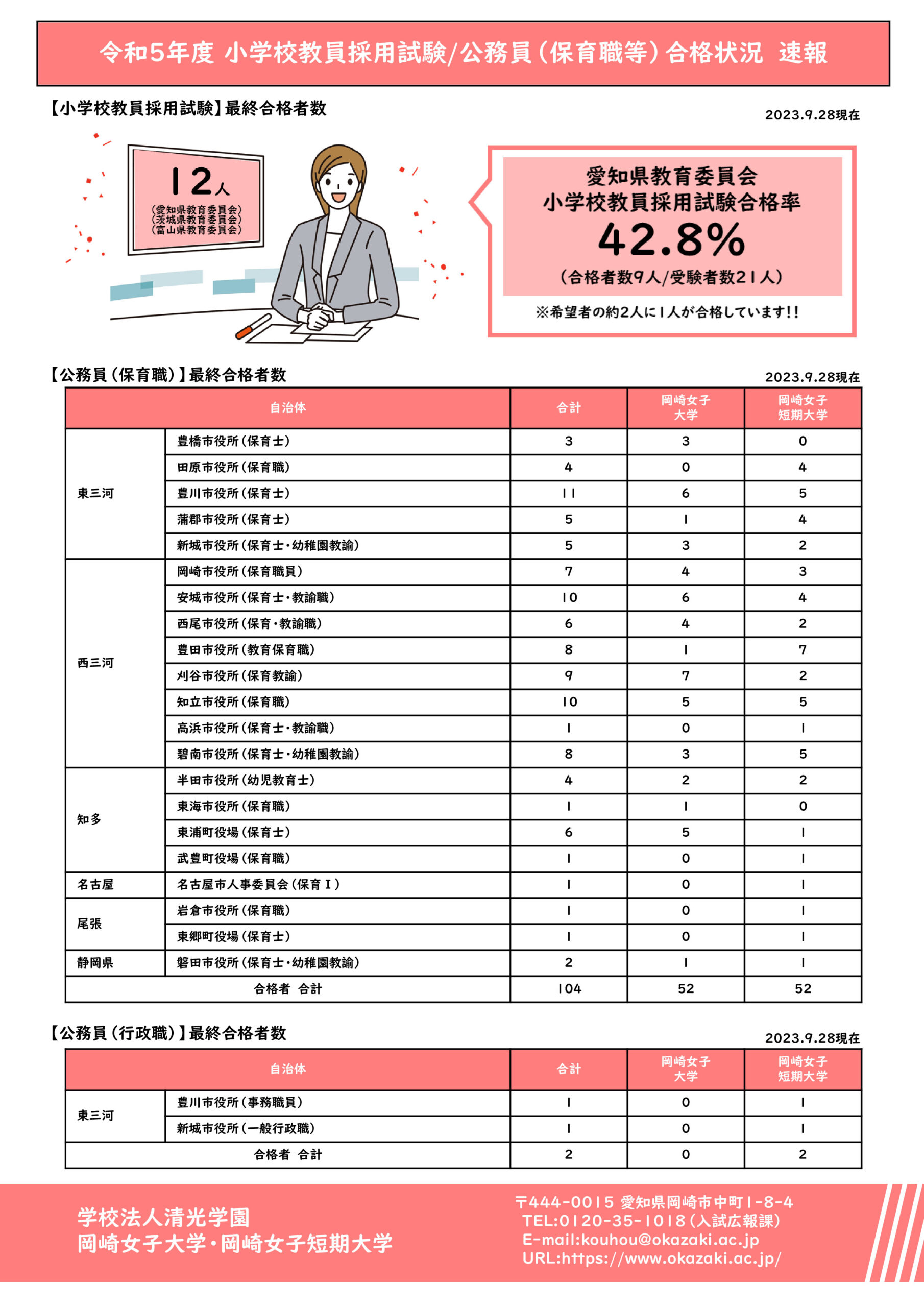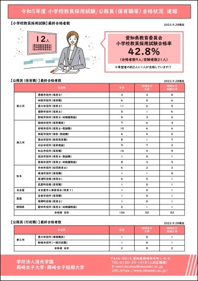 就職に強い岡崎女子大学・岡崎女子短期大学です! 公務員試験合格状況を更新しました🌟