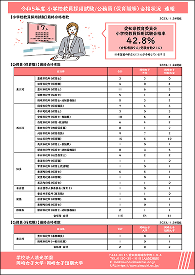 就職に強い岡崎女子大学・岡崎女子短期大学です! 公務員試験合格状況を更新しました🌟