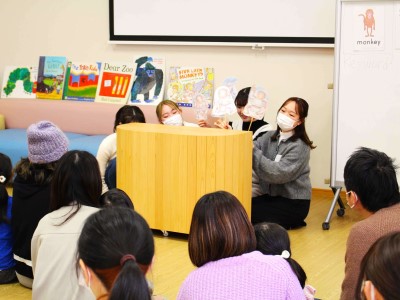 1月13日(土)本学主催「親子教室」で、学校教育コースの2年生が「英語」の授業実践として、「英語絵本の読み聞かせ」を行いました。