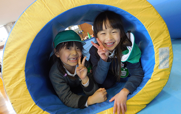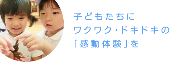 - 様々な「感動体験」を通して、多様な価値観の中で自分らしく、たくましく生きる力を育んでいきます。新しい時代に対応する幼稚園教育の保育実践・研究に取り組んでいます。