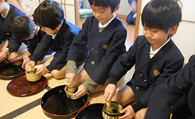 - 年間5歳児8回、4歳児2回、茶室で茶道の心を体験します